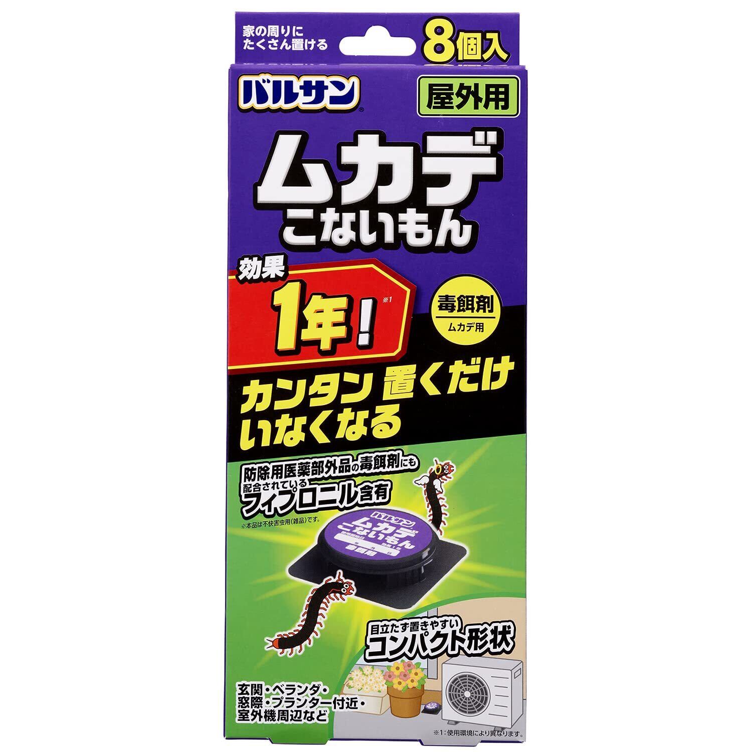 【人気商品】バルサン ムカデ こないもん 屋外用 毒餌剤 ムカデ,ムカデ・ワラジムシ・ダンゴムシ・アリ用 8個入 (効果1年) かんたん 置くだけ いなくなる