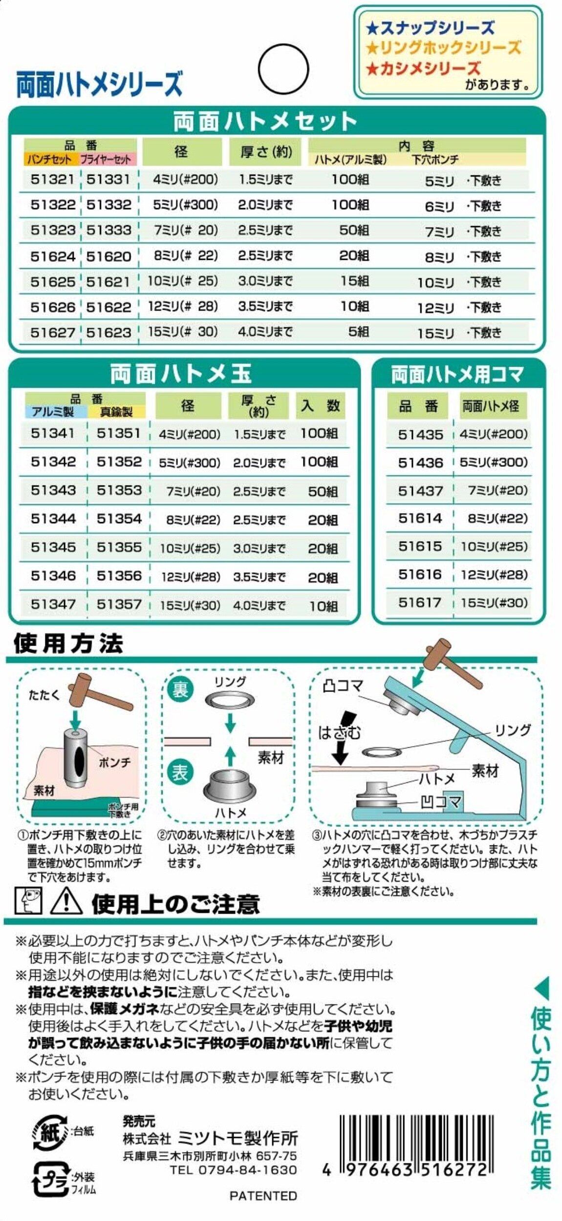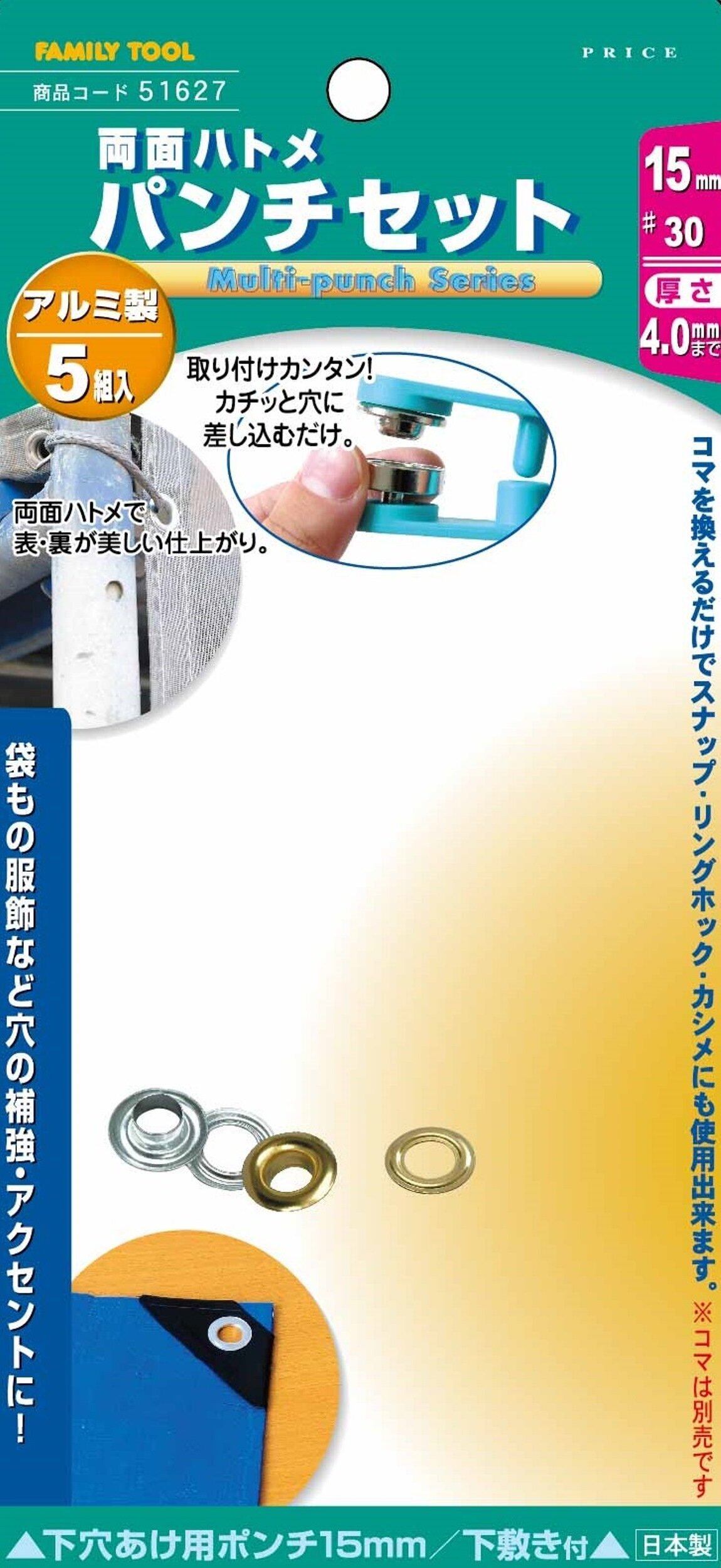 イチネンアクセス ツール事業部 FAMILY TOOL(ファミリーツール) ハトメ 両面ハトメ パンチセット 51627 15mm(#30) アルミ製 5組入
