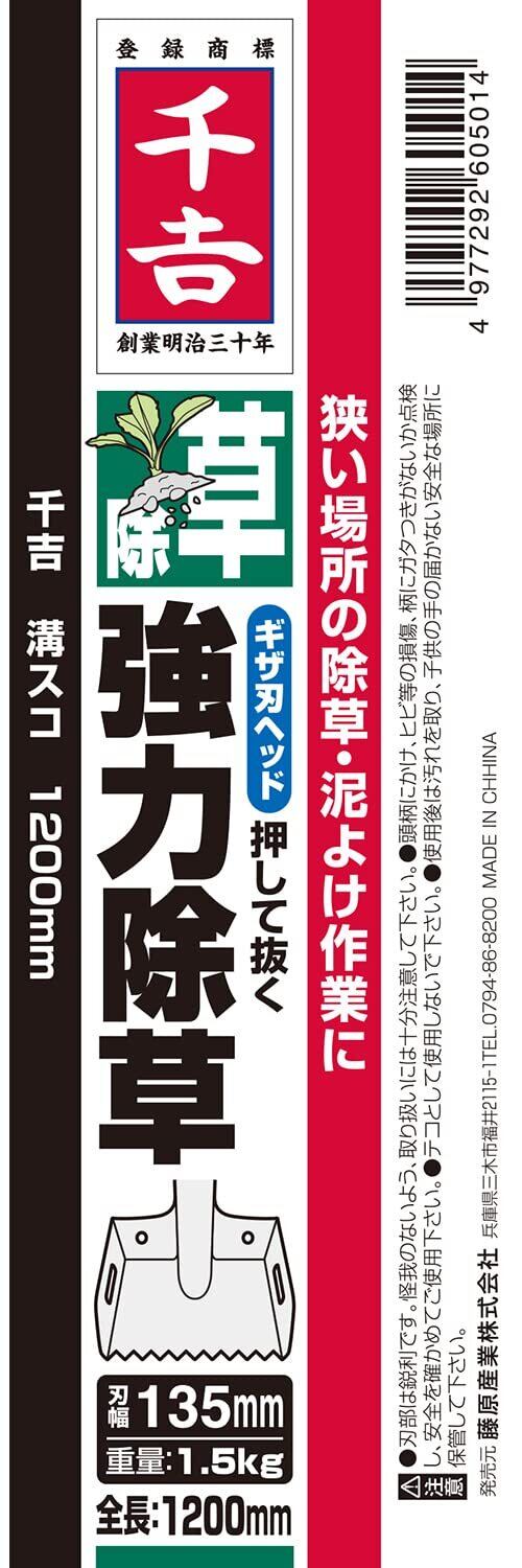 千吉 溝スコ ギザ刃仕様 1200mm 除草&泥よけ ブルーグレー