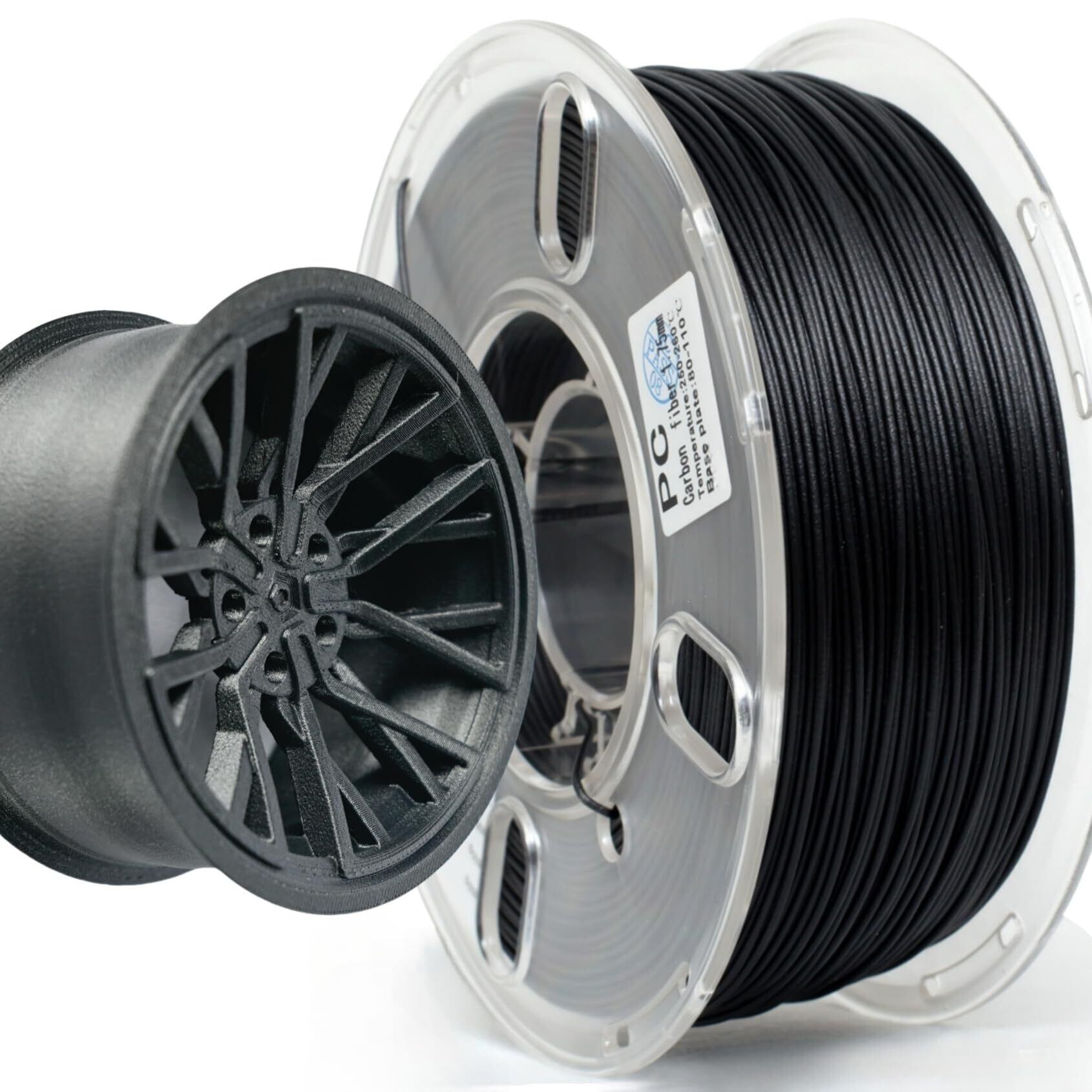 炭素繊維PCの優れた特性:【高剛性&高耐熱性】 炭素繊維PCフィラメントは、優れた安定性と高い接着力を実現。複雑な形状や大型モデルのプリントでもカールを抑え、精度の高い仕上がりを提供します。また、高耐熱性と高剛性を兼ね備え、負荷がかかる部品や機械部品の製作に最適です。