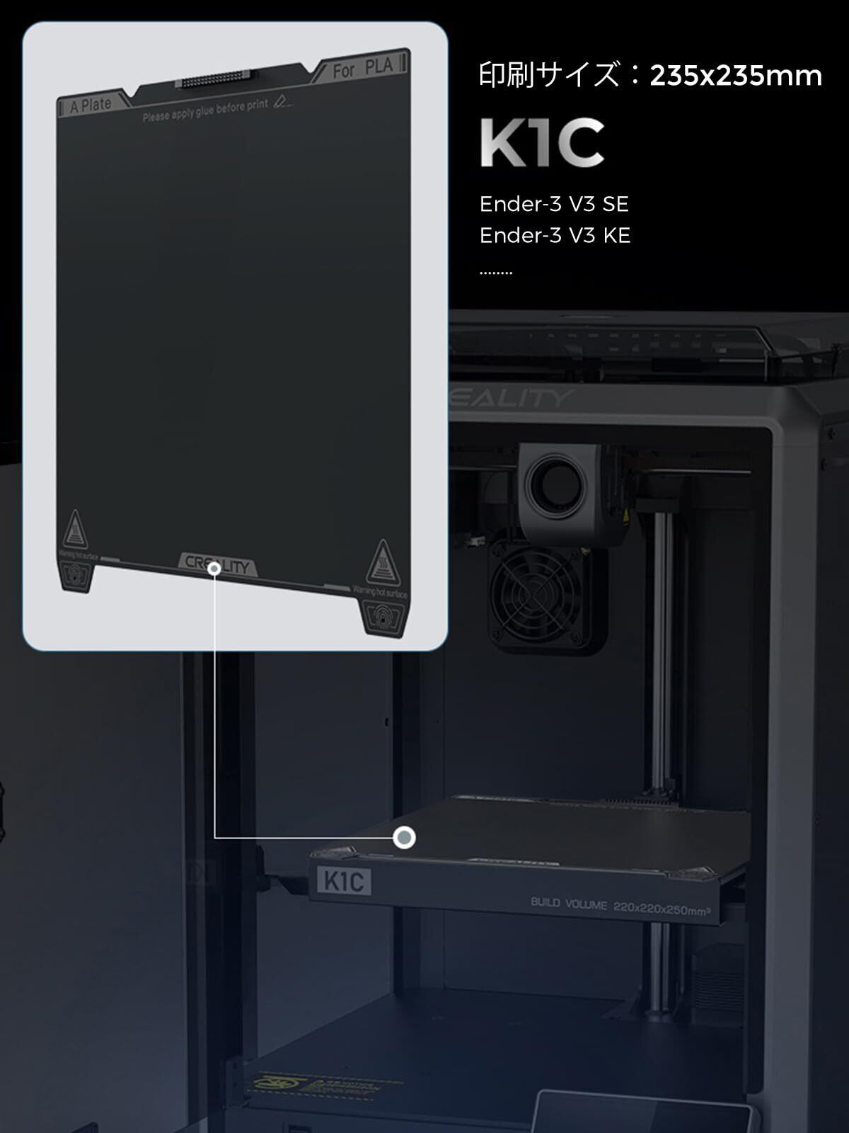 【互相性がある3dプリンター.優れた接着性】Creality K1C 3Dプリンタ本体と印刷サイズと同じのfdm 3dプリンター 本体に対応します。滑らかなPEIと様々なフィラメント間の良好な接着性、モデルはPEIに付着しやすく、底面は滑らかである。強力な磁力により、外れにくいです。