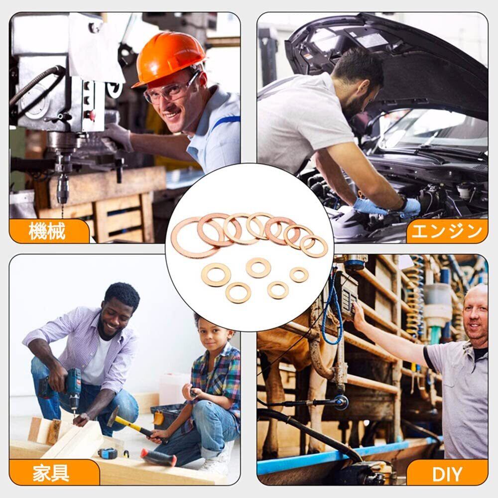 【特価セール】YFFSFDC 平座金 銅ワッシャー 銅リング m5/m6/m8/m10/m12/m14 密封リング シールガスケットセット 良い気密性 耐食性 耐久性 200pcs 収納ケース付き