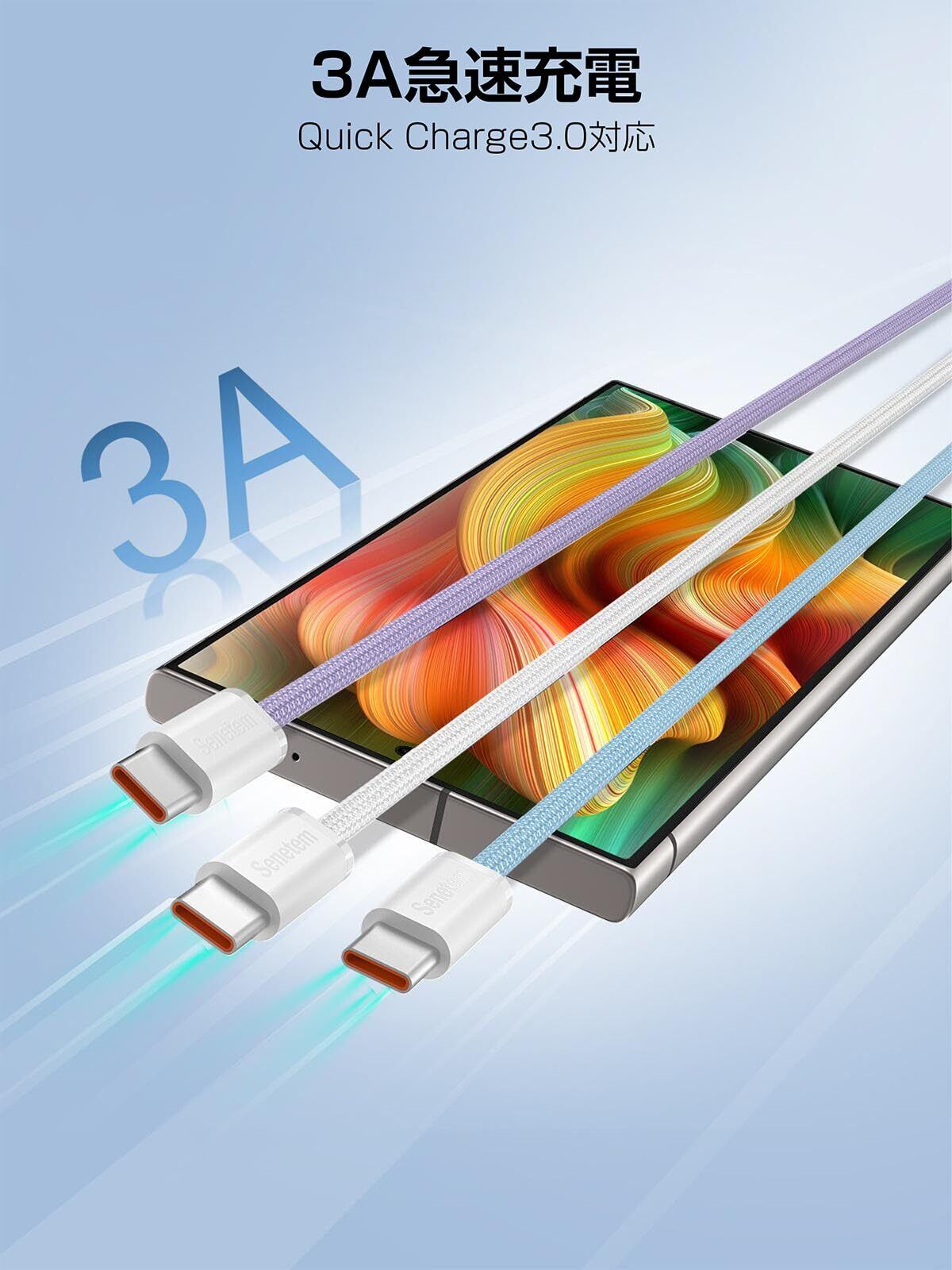 Senetem USB Type C ケーブル 【2m+2m+2m 3本】 タイプc ケーブル 3A急速充電 cタイプ 充電ケーブル QuickCharge3.0対応 iPhone16/iPhone15/GalaxyS24/Pixel/Google/Xperia/LG等USB-C 機種対応