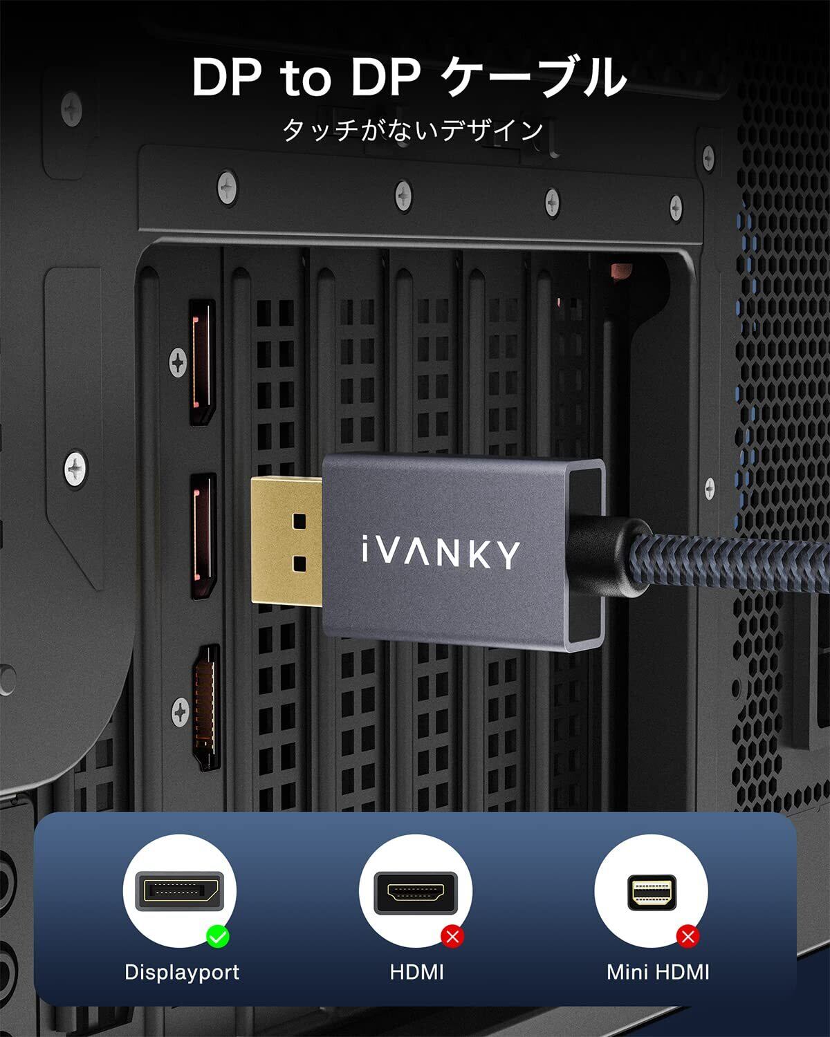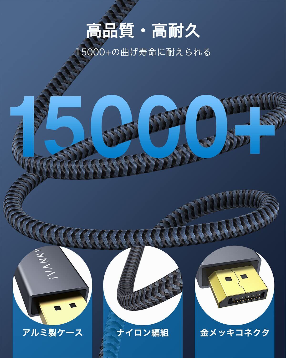 DPケーブル iVANKY 【VESA認証ゲーミングDisplayport ケーブル 1.2/4K/2M】4K@60Hz/ 2K@165Hz/ 2K@144Hz ディスプレイポート ケーブル DP to DP 最大21.6Gbps ハイスピード PC/ASUS/Dell/Acer ノートパソコン/テレビ対応 ディスプレイポートディスプレイケーブ ル モニターケーブ ル