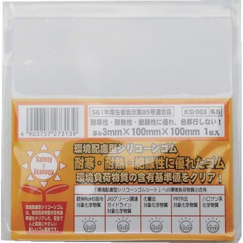 和気産業 環境配慮型シリコーンゴム 乳白 厚み3mmX幅100mmX100mm RoHS対応 耐熱性 絶縁性 KSI-003