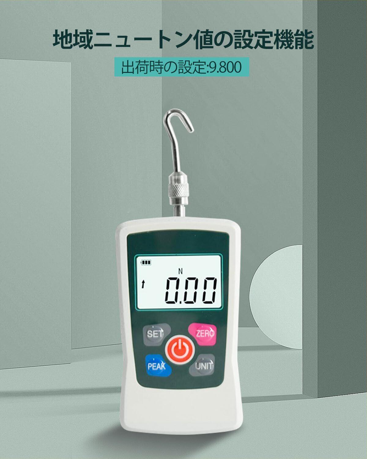 【上限値/下限値設定・重⼒加速度】デジタル フォースゲージ目標上限値/下限値に到達確認可能、LED表⽰「MAX」点滅また鳴り続けます。【重⼒加速度】地域ニュートン値の設定可能、 地域に応じたニュートン換算値を設定することで重力加速度の違いによる誤差が解消できます。