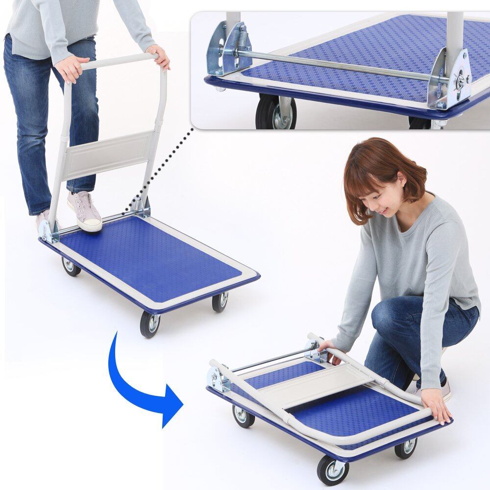 アイリスプラザ 台車 折りたたみ ブルー 耐荷重 150㎏ コンパクト 軽量 静音 キャスター付き スッキリ収納 スチール製 PH1504