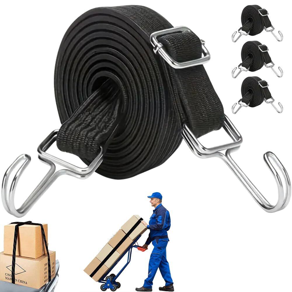 荷台用 ゴム紐 4本セット ゴムバンド(最新亜鉛メッキ鋼製フック)台車用 ゴムひも 200cm 荷物固定紐 ベルト伸縮可能 ゴムロープ 荷崩れ防止 自転車 バイク キャリーカート 荷台 転落防止 引っ越しの時にも大活躍 (ブラック)