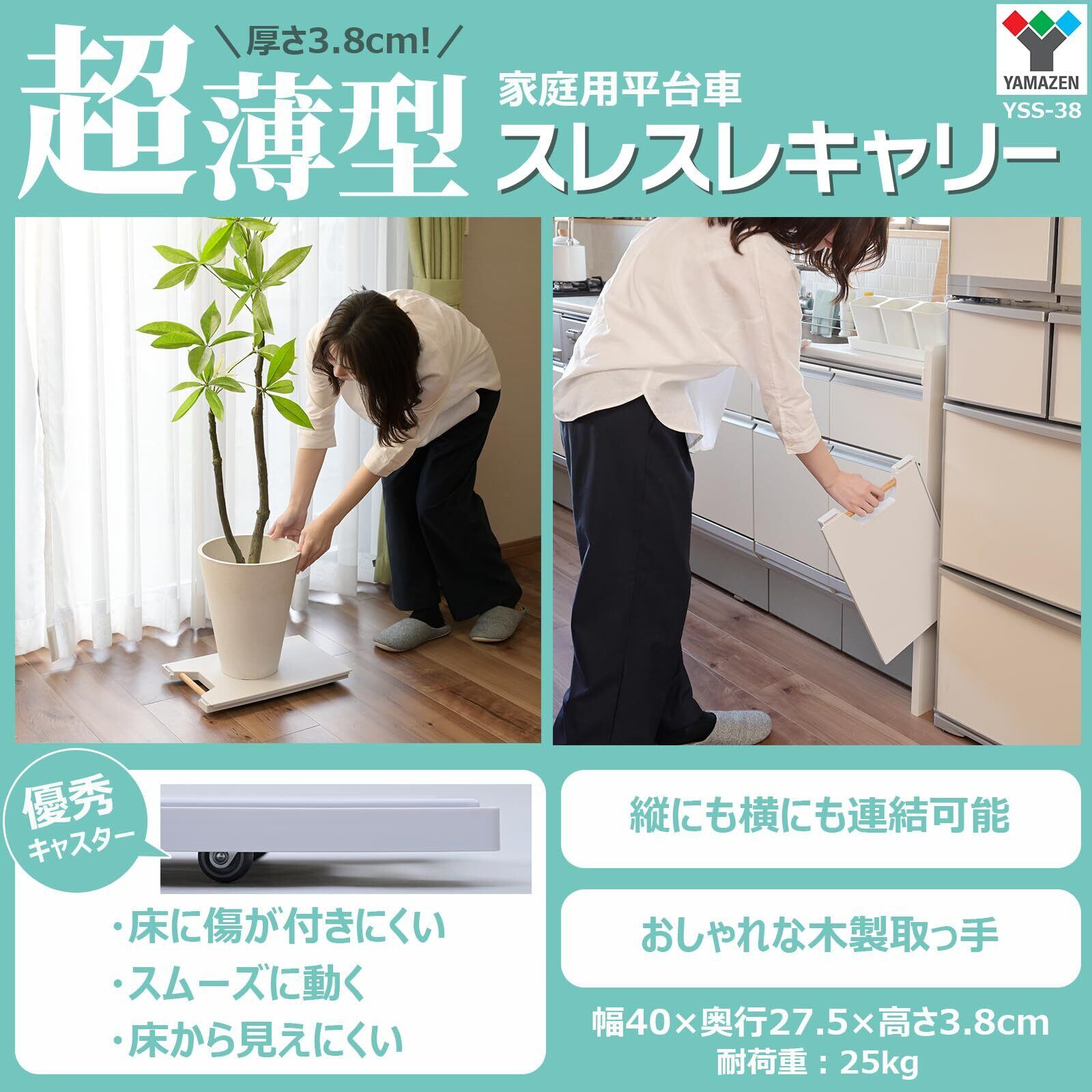 山善(YAMAZEN) 台車 コンパクト 超薄型 幅40×奥行27.5×高さ3.8cm キャスターが目立たない 連結可能 木製取っ手 平台車 スレスレキャリー 完成品 ホワイト YSS-38(WH)