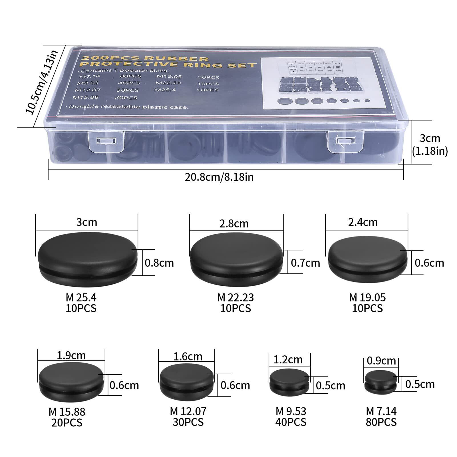 パッケージ内容: 合計200個のラバーグロメット、m7.14 - 80個、m9.53 - 40個、m12.7 - 30個、m15.88 - 20個、m19.05 - 10個、m22。 23 - 10 個、m25.4 - 10 個、毎日の使用に十分です。