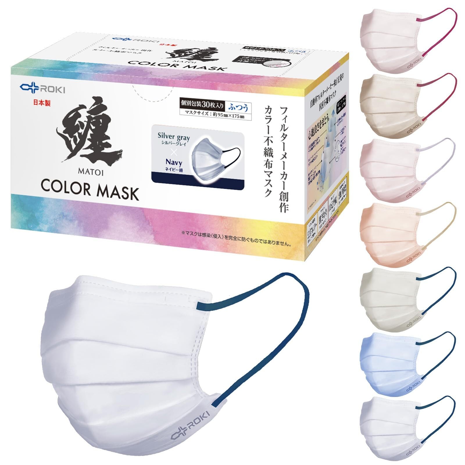 [ROKI] 纏 まとい 日本製 不織布 バイカラー マスク 30枚/60枚 ふつう/小さめサイズ 日本製 個包装 息がしやすい ロキ フィルター創作 ますく