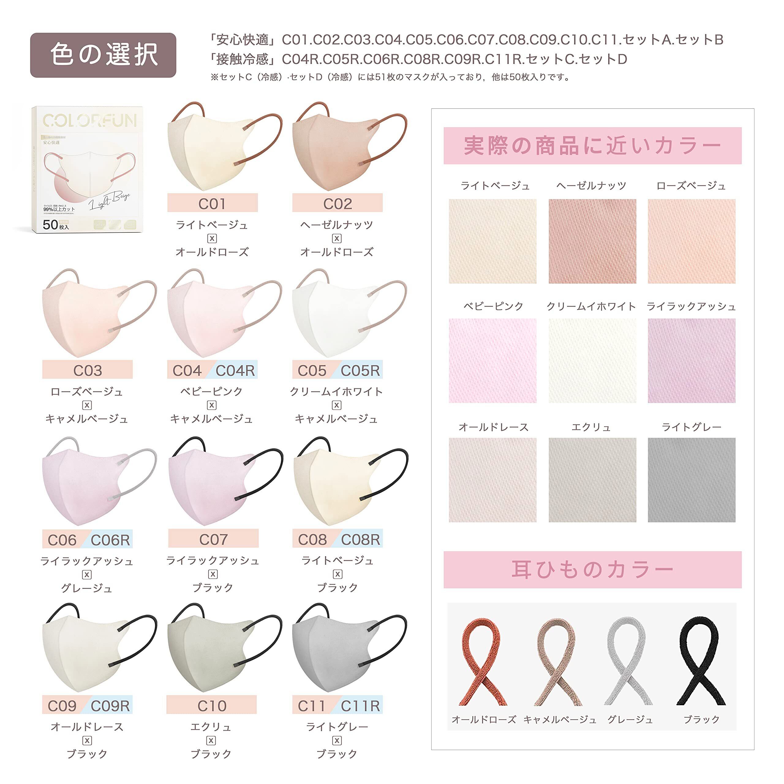 [モエライフ] 【2023新色 個包装 50枚】3D マスク 冷感マスク バイカラー 血色マスク 夏用マスク 不織布 カラーマスク 立体マスク 3層構造 小顔 不織布マスク ダイヤモンドマスク 接触冷感 ひんやりマスク 涼しいマスク 息がしやすいマスク 使い捨て おしゃれ メガネが曇りにくい 口紅が付きにくい 耳が痛くならない ピンク ベージュ (セットA【50枚】, 普通タイプ·個包装)