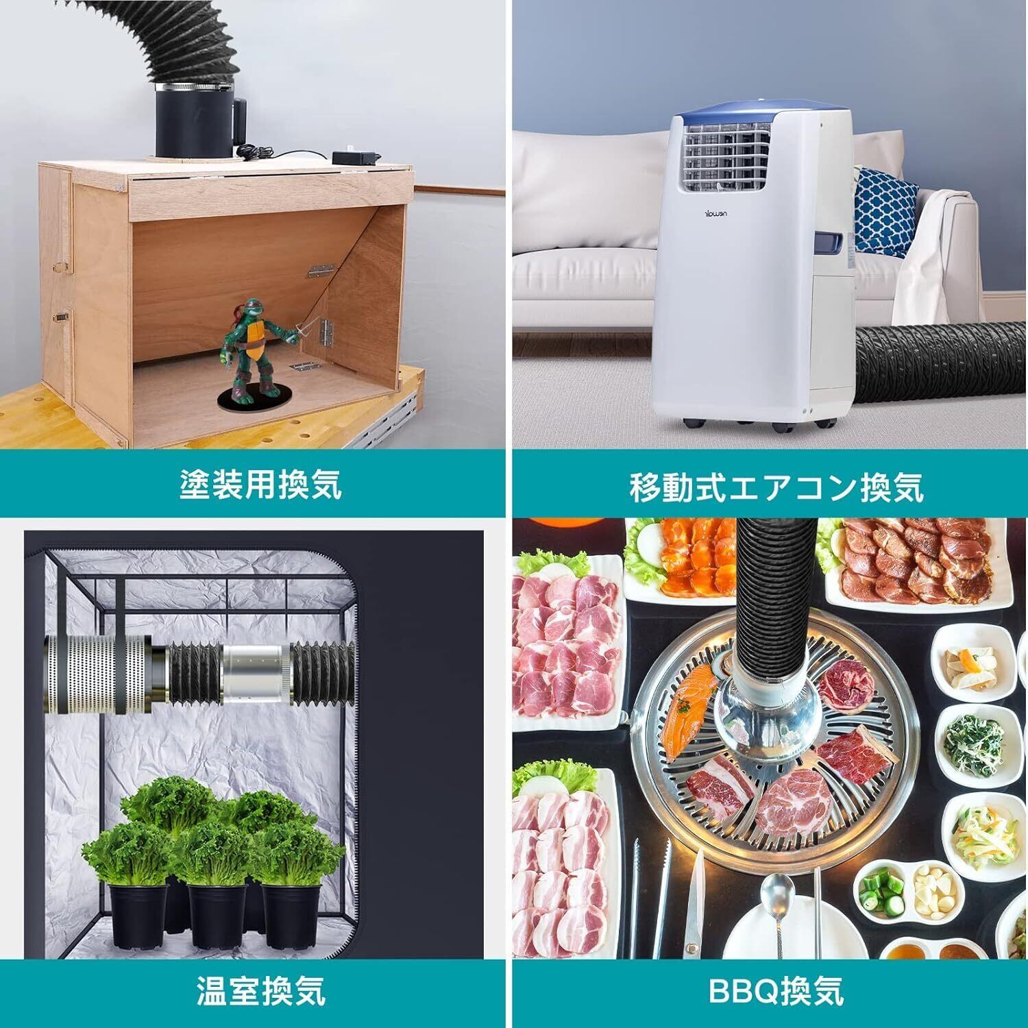 【最新強化型&丈夫】このダクト排気ホースは安心特殊四層構造を採用され、優れた気密性、復元力、防水性、UV耐性があり、丈夫で変形しにくい。アルミホースと比べて、外側のPVC層はひび割れや破れ、結露からの保護を強化し、最大空気流量:30m/s(1.5倍増)、最高使用圧力:2000Pa(2倍増)、耐久性、雑音耐性や高圧耐性にもっと優れ。