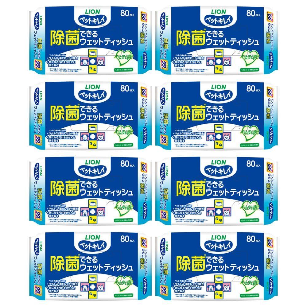 【数量限定】ペットキレイ 除菌できるウェットティッシュ 80枚入×8個 ライオンペット