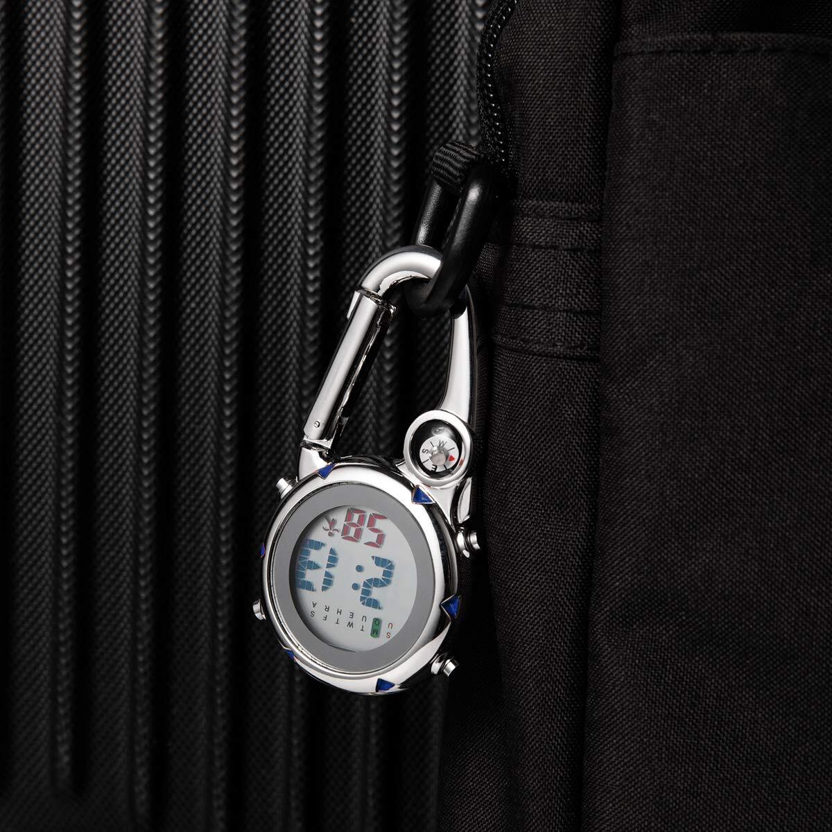 JEWELRYWEカラビナウォッチ デジタル表示 クリップ 時計 キーホルダー 懐中時計 男女通用 ブラック