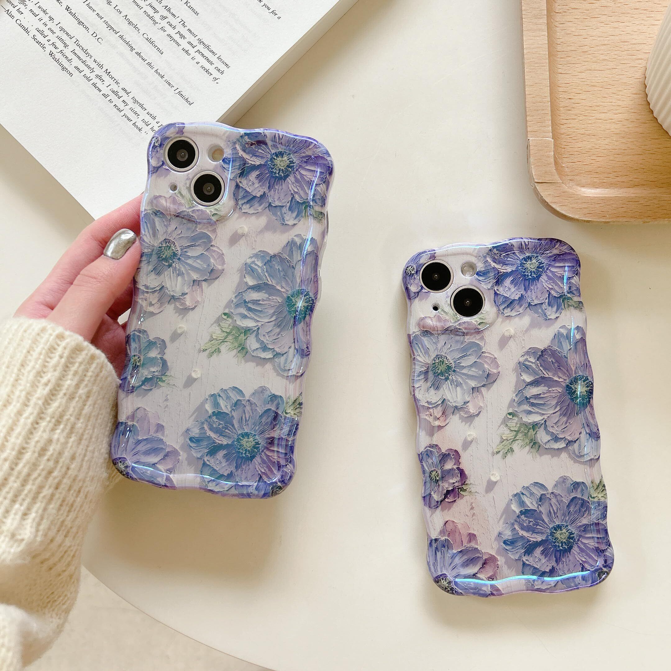 【2022最新】QLTYPRI iPhone 13ケースTPUカバー おしゃれ 韓国 可愛い 花柄 薄型 軽量 耐衝撃 スマホケース ワイヤレス充電対応 ストラップホール付き アイフォン13 ケース 6.1インチ 対応 - パープル | allstore2