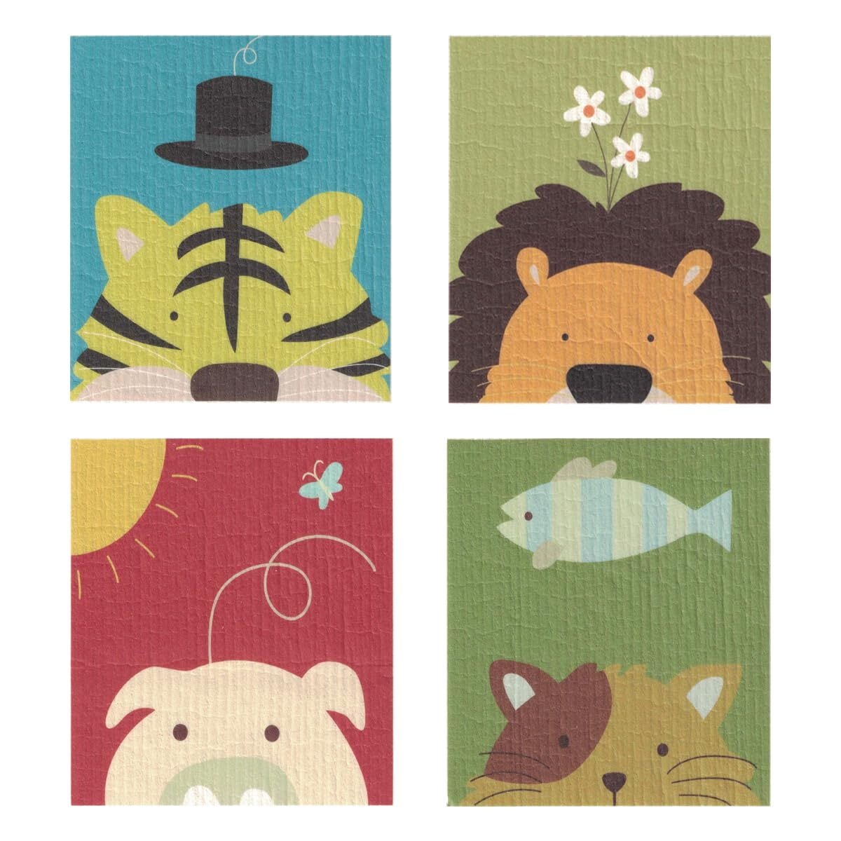 キッチンクロス セルロース ふきん 天然繊維 スポンジワイプ (17x19cm 4枚入) 水切りマット 速乾 吸水スポンジ クロス 台拭き