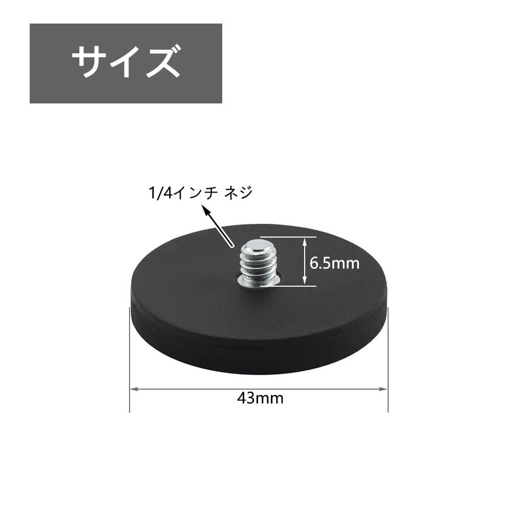 Mikankawa アクションカメラ 磁気吸盤 1/4ネジ マグネット 雲台 ゴム被覆 車 オートバイク スマホホルダー 防犯カメラ 一眼レフ カメラアクセサリー (43mm)