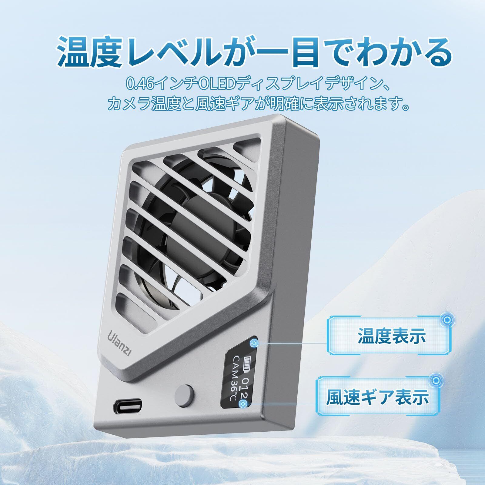 【新着商品】Ulanzi カメラ用冷却ファン 扇風機 【アップグレード版】 発熱対策 風量調節可 静音設計 スプリングタイプ 冷却クーラー 小型 軽量 Type-c充電式 200mAh カメラ用ラジエーター 送風機 夏用 排熱 温度表示 ソニー/キヤノン/フジフイルムに対応 シルバー | allstore2