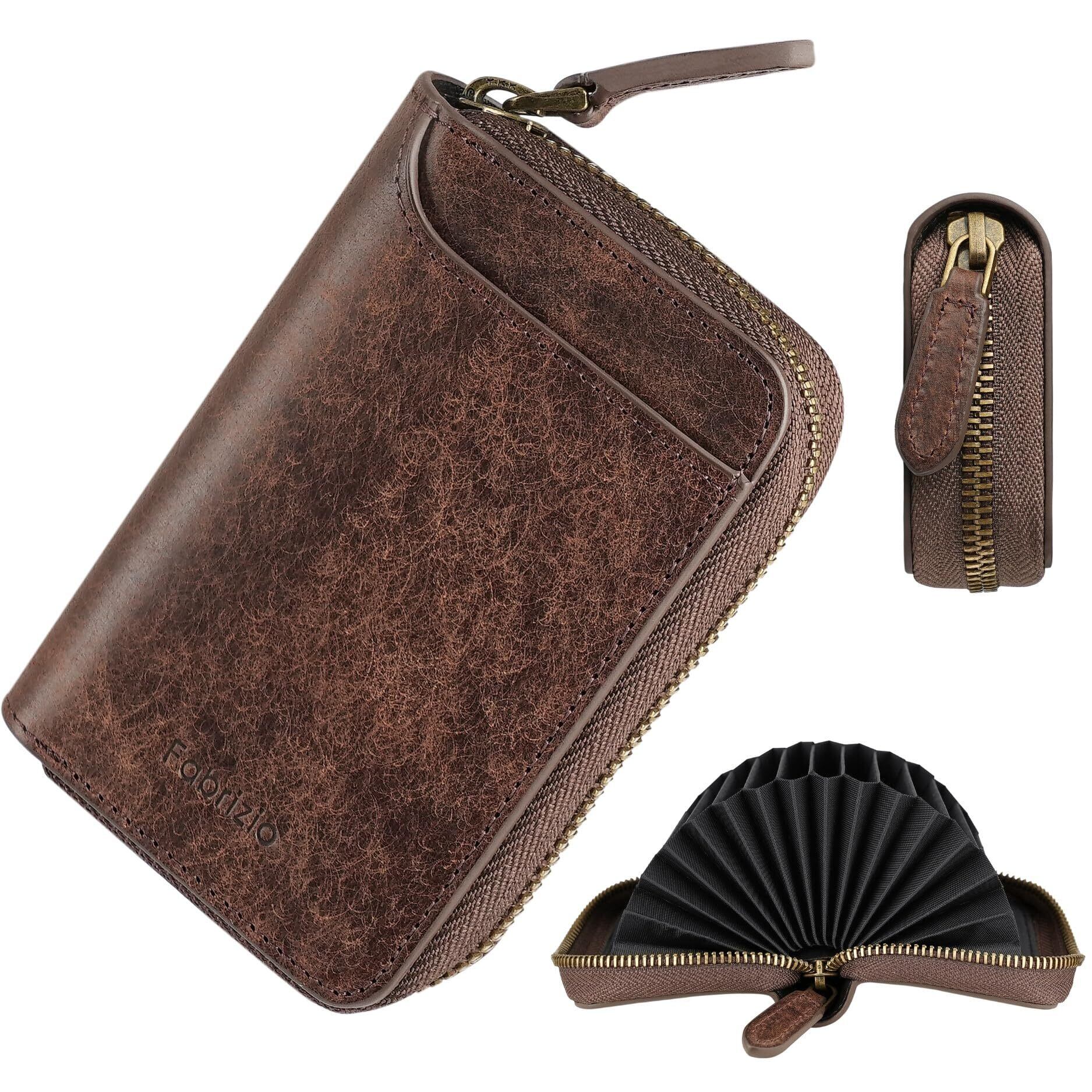 【新春セール】[ファブリツィオ] カードケース メンズ カード入れ 小銭入れ 大容量 20枚 じゃばら 高級 イタリアン レザー 本革 クレジットカードケース 磁気防止 スキミング防止 (タバコ)