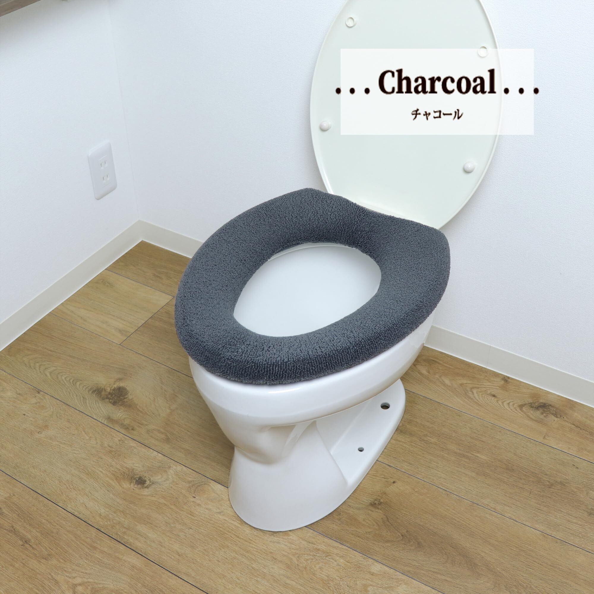 カキウチ 便座カバー O型 チャコール 洗濯機で丸洗い可能 かぶせて留めるだけ かんたんセット SELECT JUST FIT