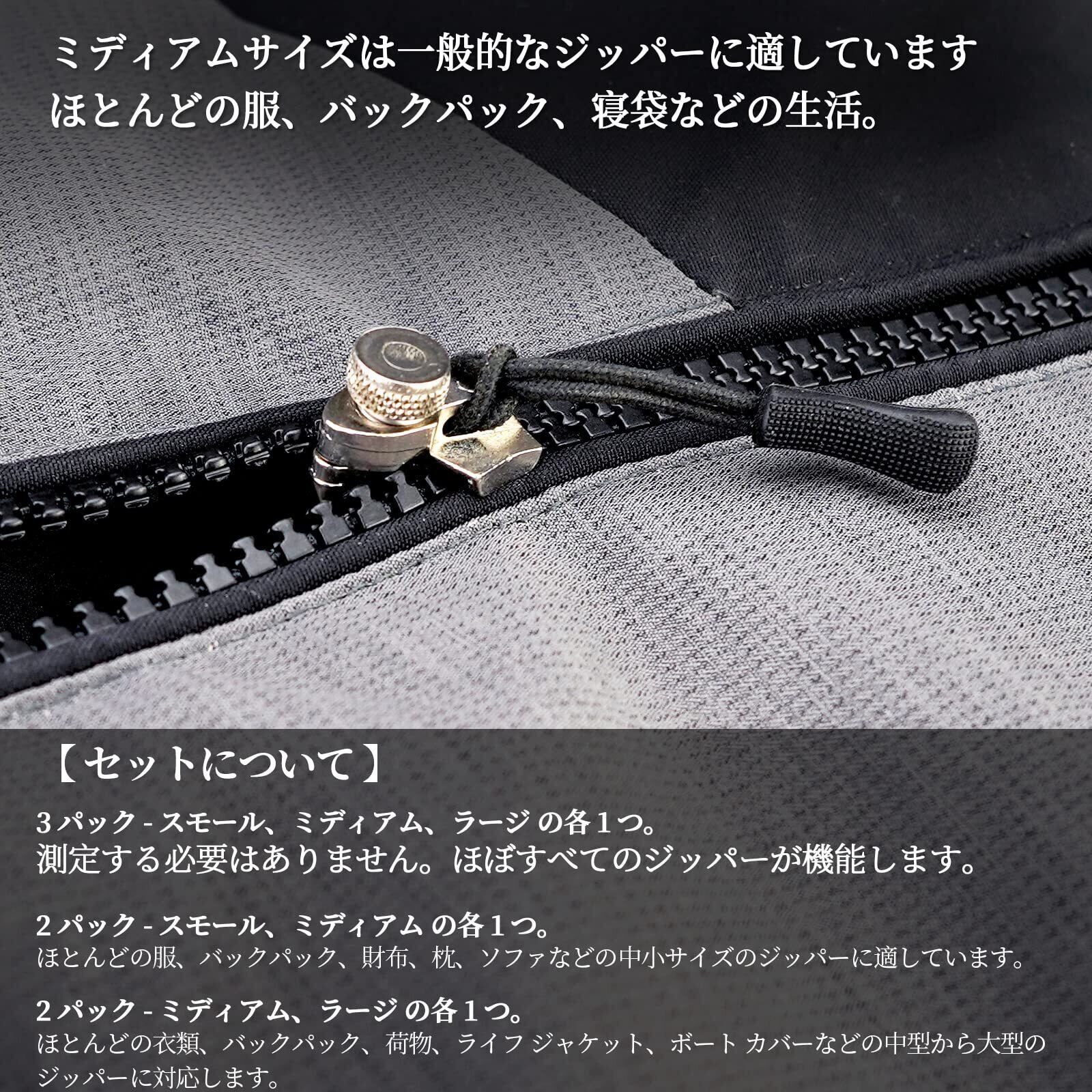 ほとんどのZipに適しています - それは金属、プラスチックまたは樹脂のジッパーでうまく機能し、そして3つのサイズを選択することができます。