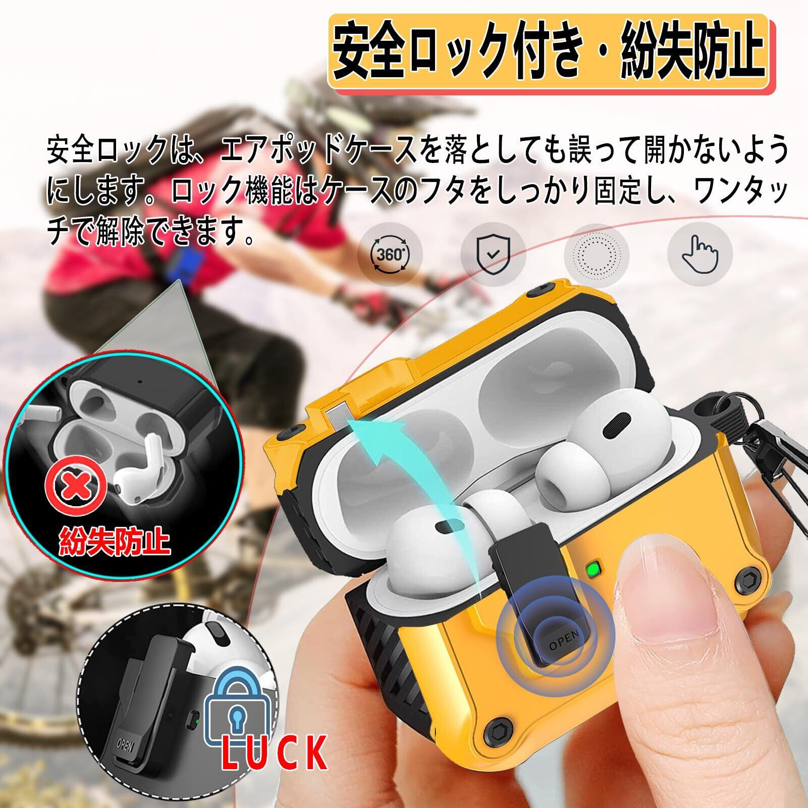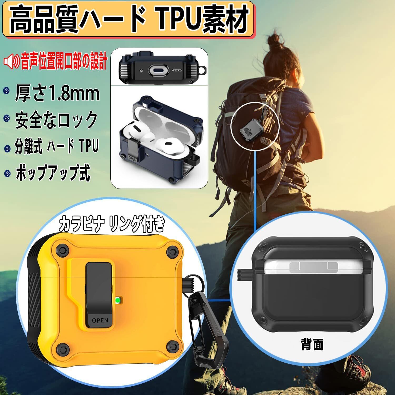 OJBSEN Airpods 第4世代 ケース AirPods4 ケース 2024 (USB-C) 対応 安全ロック付き 自動ボタン エアーぽっず 第4世代 カバー クリーナーキット付き Magsafe ワイヤレス充電対応 LEDライトが見える エアポッズ4カバー カラビナ付き 分離式 ハード TPU 全面保護 耐衝撃 傷防止 軽量 (イエロー)