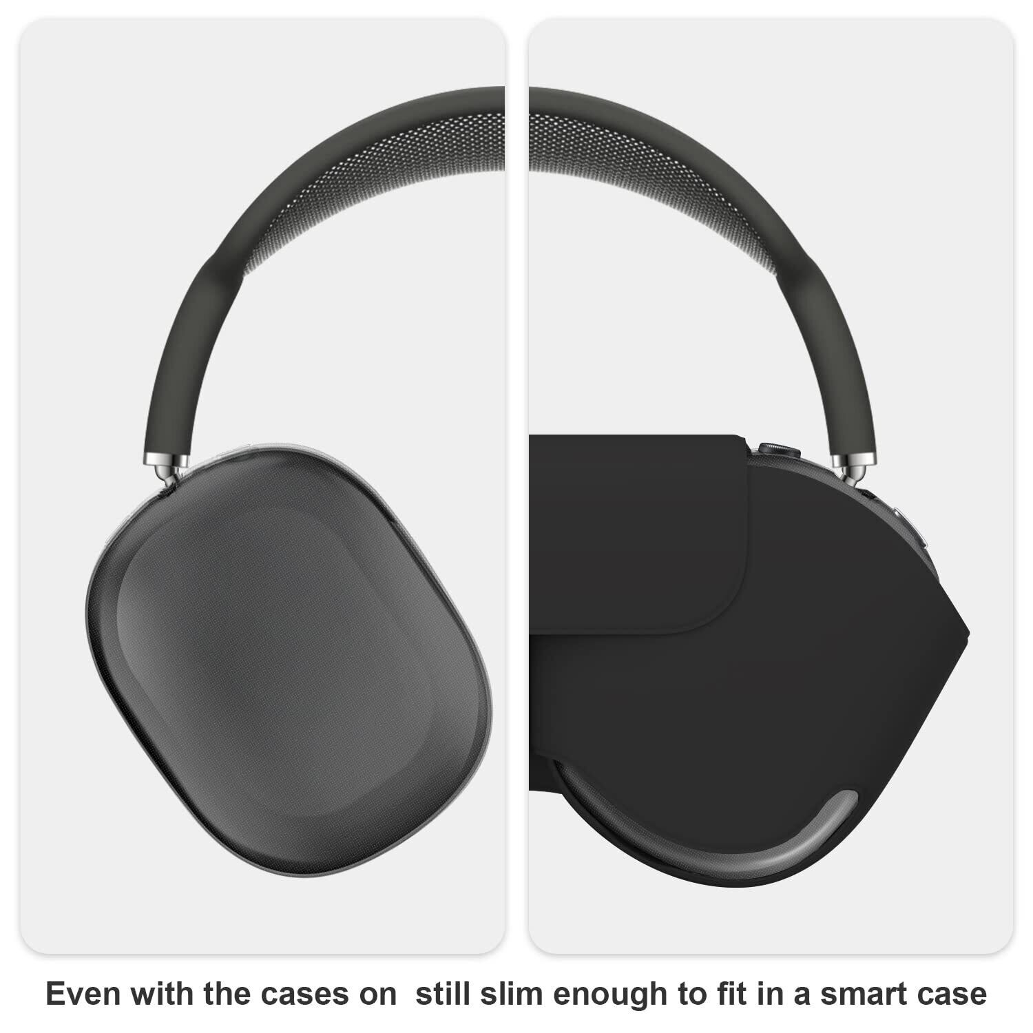 VICHYIE AirPods Max対応ケース、柔らかいTPU透明ケース傷防止、Max ヘッドホン用保護カバー薄型、スマートケースに収まる(透明-グレー)