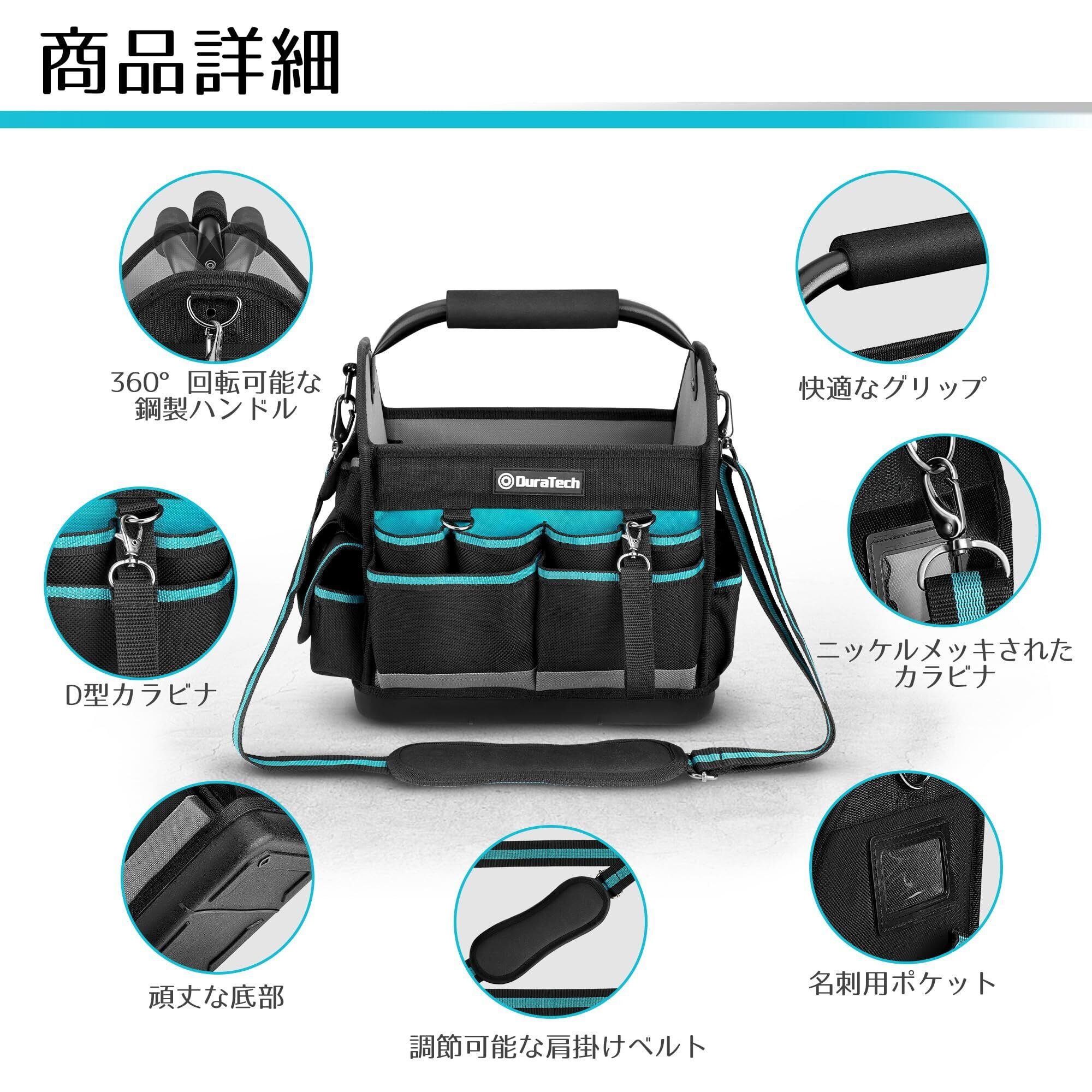 DURATECH ツールバッグ 多機能ツールバッグ 工具差し入れ 工具袋 工具入れ 900Dオックスフォード 調節可能な肩掛けベルト付き 鋼製ハンドル付き 多機能 大容量 整備工具 工具収納 電気工事 木工用 30.5 x 22 x 30 cm