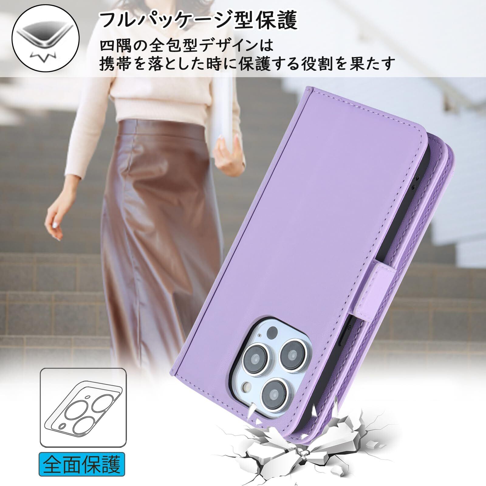 【2022最新】【Hamany】 iphone 15 pro ケース 手帳型 スマホ ショルダー アイホン15プロケース カード収納 大容量 スマホケース iphone 15pro スタンド機能 財布型 耐衝撃 耐久性 全面保護 女性 肩がけ 首掛け 斜め掛け ショルダー 携帯カバー -パープル