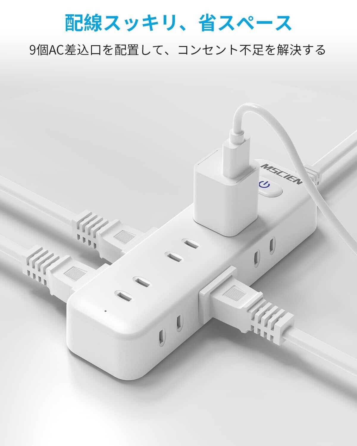 【2022最新】Mscien 延長コード 3m 電源タップ 雷ガード 9個口 MSCIEN コンセント タップ テーブル 壁掛け OAタップ たこあしコンセント 分岐 一括スイッチ スイングプラグ