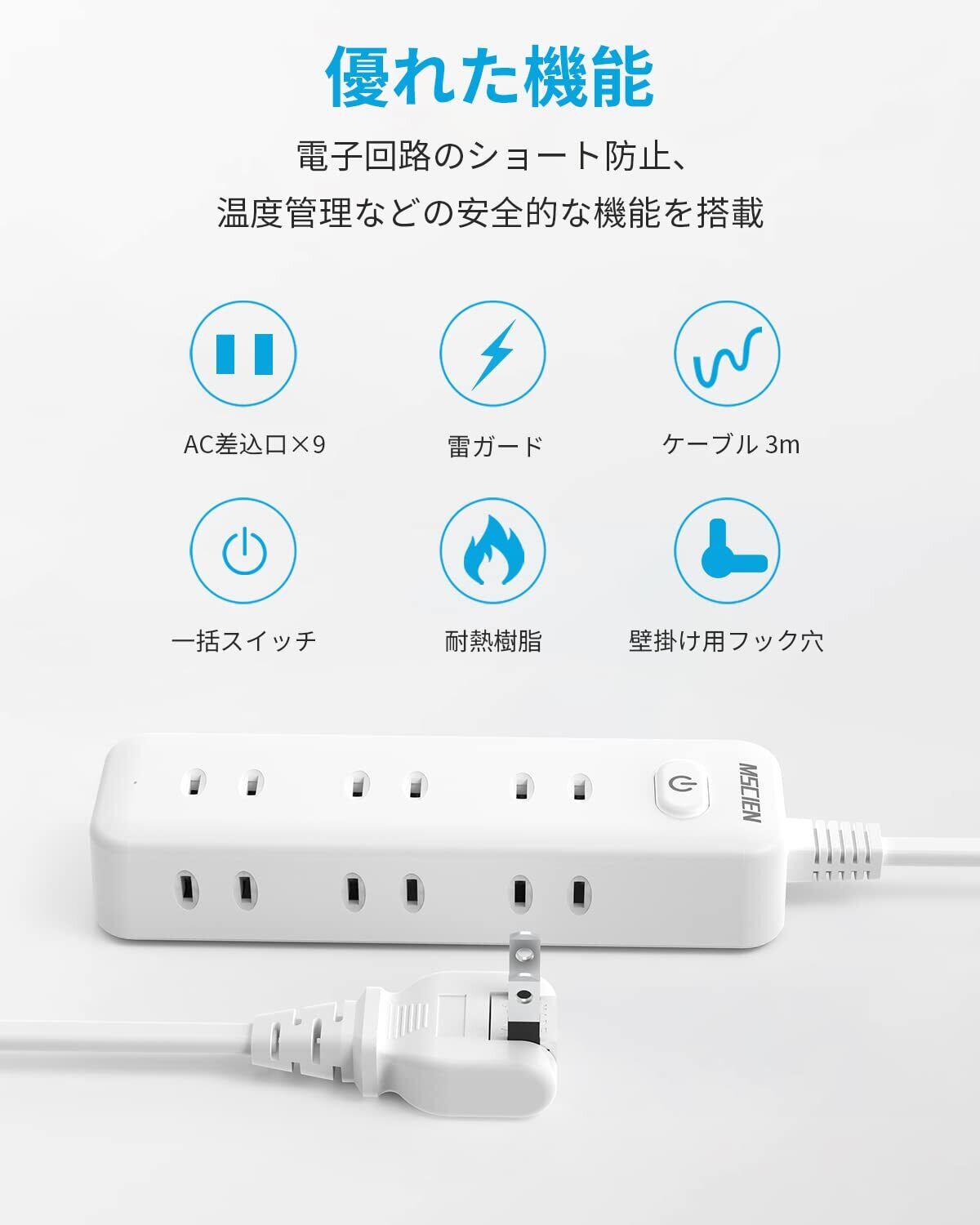 【2022最新】Mscien 延長コード 3m 電源タップ 雷ガード 9個口 MSCIEN コンセント タップ テーブル 壁掛け OAタップ たこあしコンセント 分岐 一括スイッチ スイングプラグ | allstore2