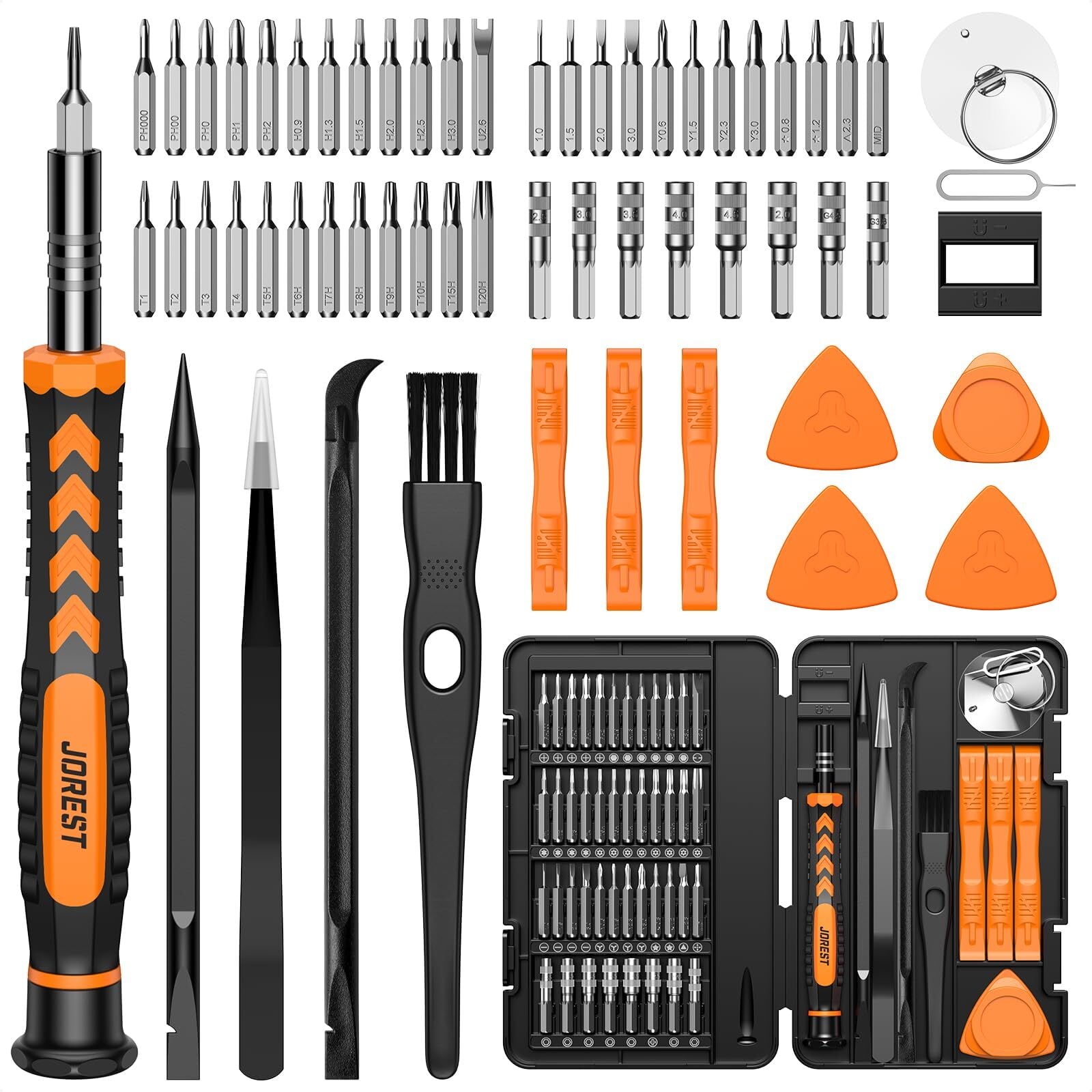 JOREST 59pcs 精密ドライバーセット, ポータブルDIY工具, Torx T5 T6 T7 T8 T9 T10 T15,星型/三角/Y型/プラスネジ ドライバー Y000/Y00/Y0,P2/P5等,とるくすドライバーセットはに適していますiphone拆解、Macbook、Switch修理、PS4/PS5本体拆机、Xbox、ipad、ラップトップ、PC、眼鏡、腕時計、工具家庭用等