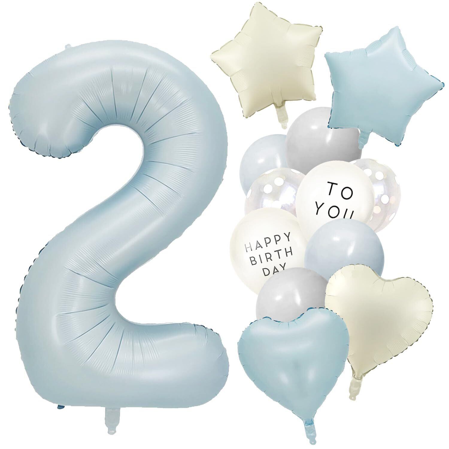 Iysoll 2歳 バルーン 誕生日 飾り付け 数字 バルーン 90cm 大きい ナンバーバルーン セット バースデー 飾り 2 風船 子供 誕生日お祝い 男の子 女の子 くすみブルー