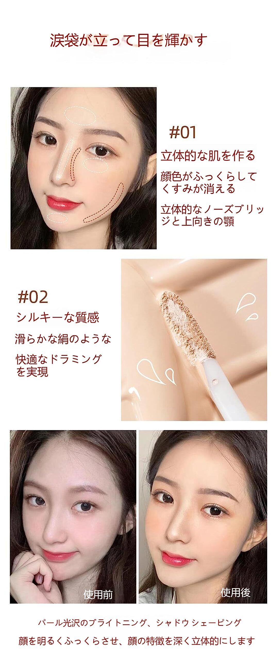 商品特長 PIPL立体創造正規品、リキッドタイプシェーディング/ハイライト スティックは、メイクアップが一日中持続し、防水性があり、耐汗性があり、ベタつきません。ぼかしやすいし馴染む