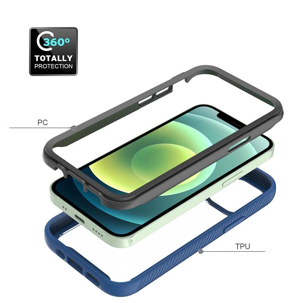 iPhone 12 Mini ケース Apple iPhone 12 Mini インチ 耐衝撃 360全面保護 米軍MIL規格 薄型 軽量 ワイヤレス充電 クリア 脱着簡単の二重構造 耐衝撃 背面クリア PC+TPU 全面保護 カバー 前後 両面 ケース ワイヤレス充電対応 (青)