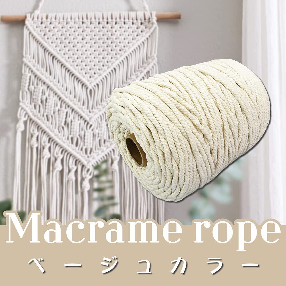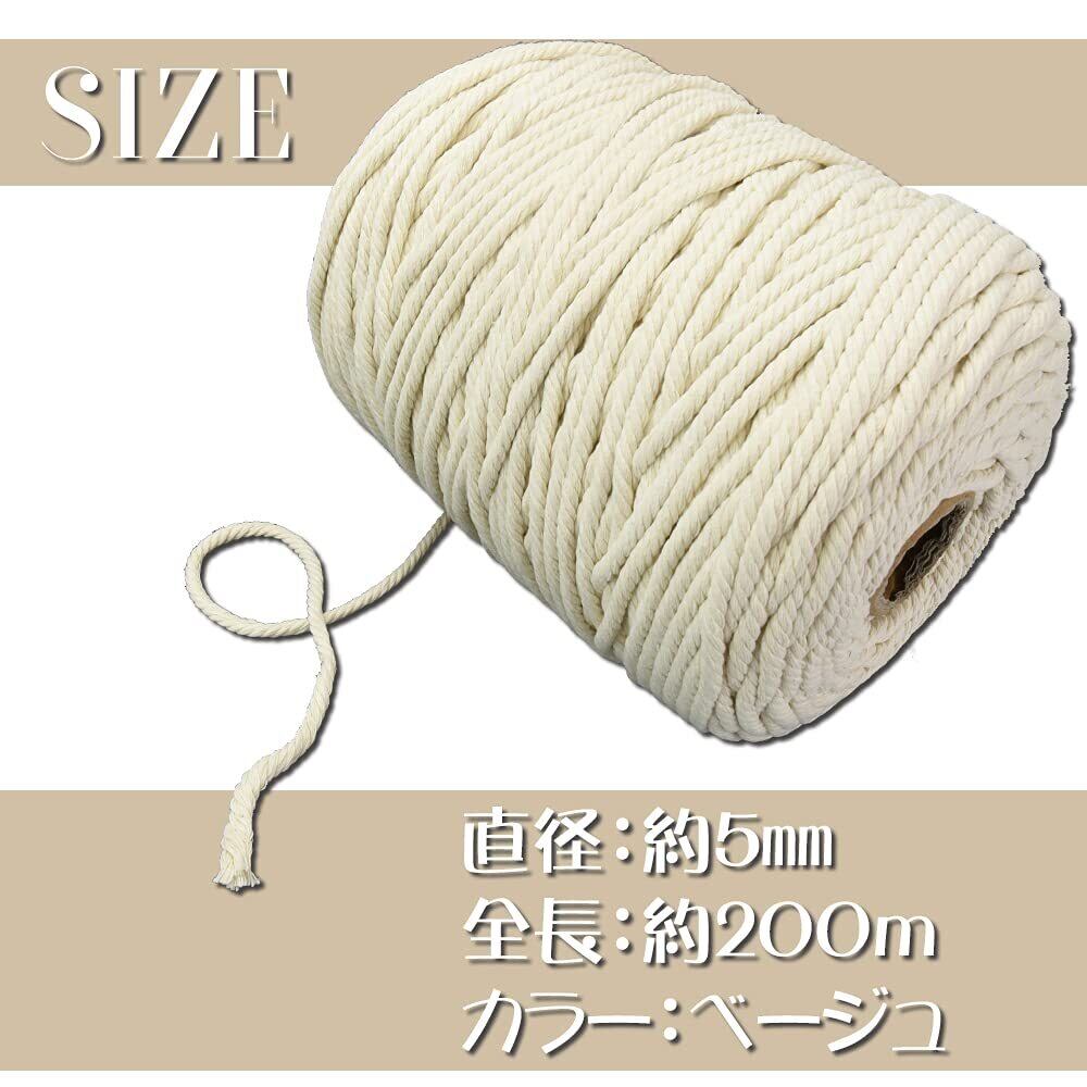 マクラメロープ 手芸紐 5mm コットン素材 天然コード 編み糸 アクセサリー 装飾 壁飾り (200M ベージュ)