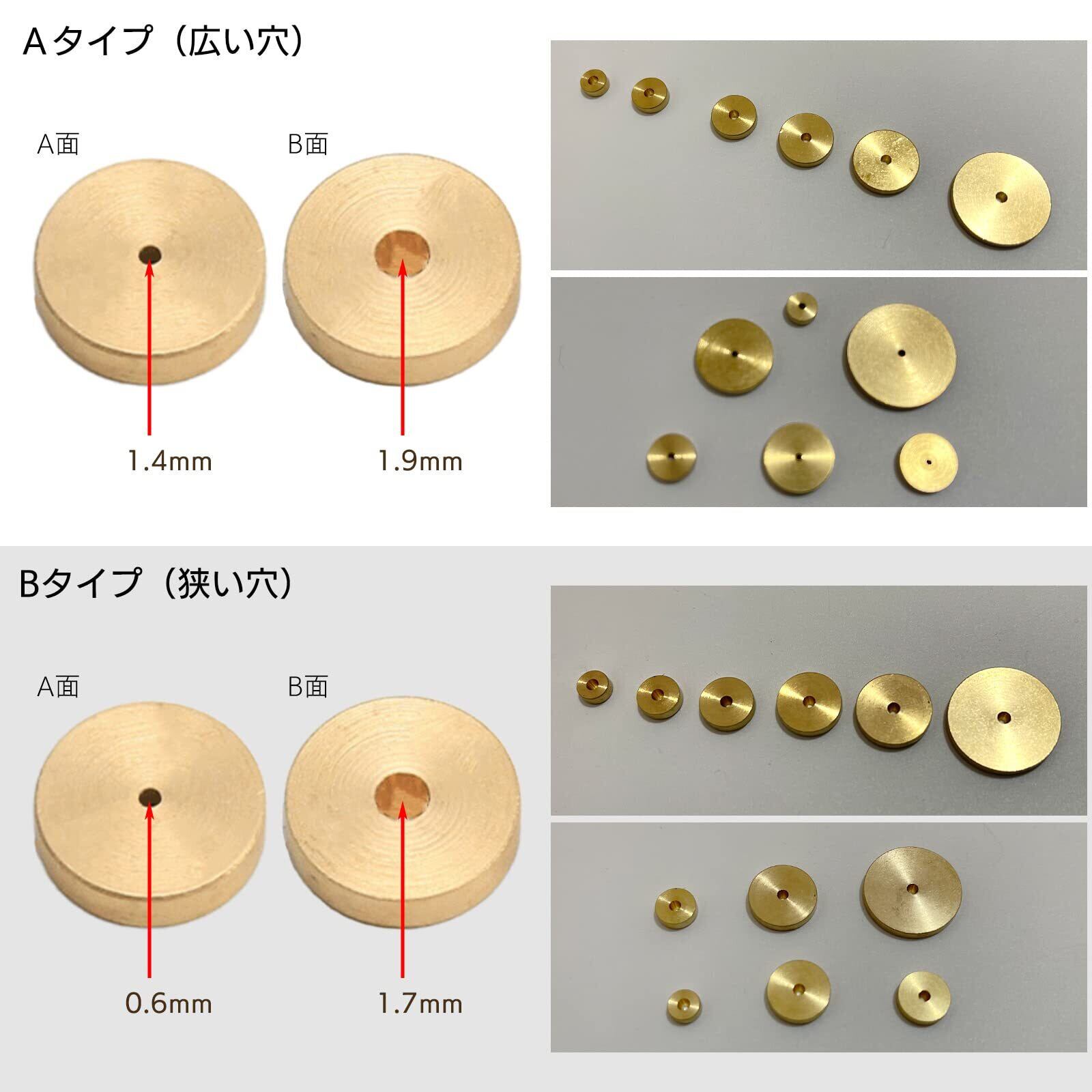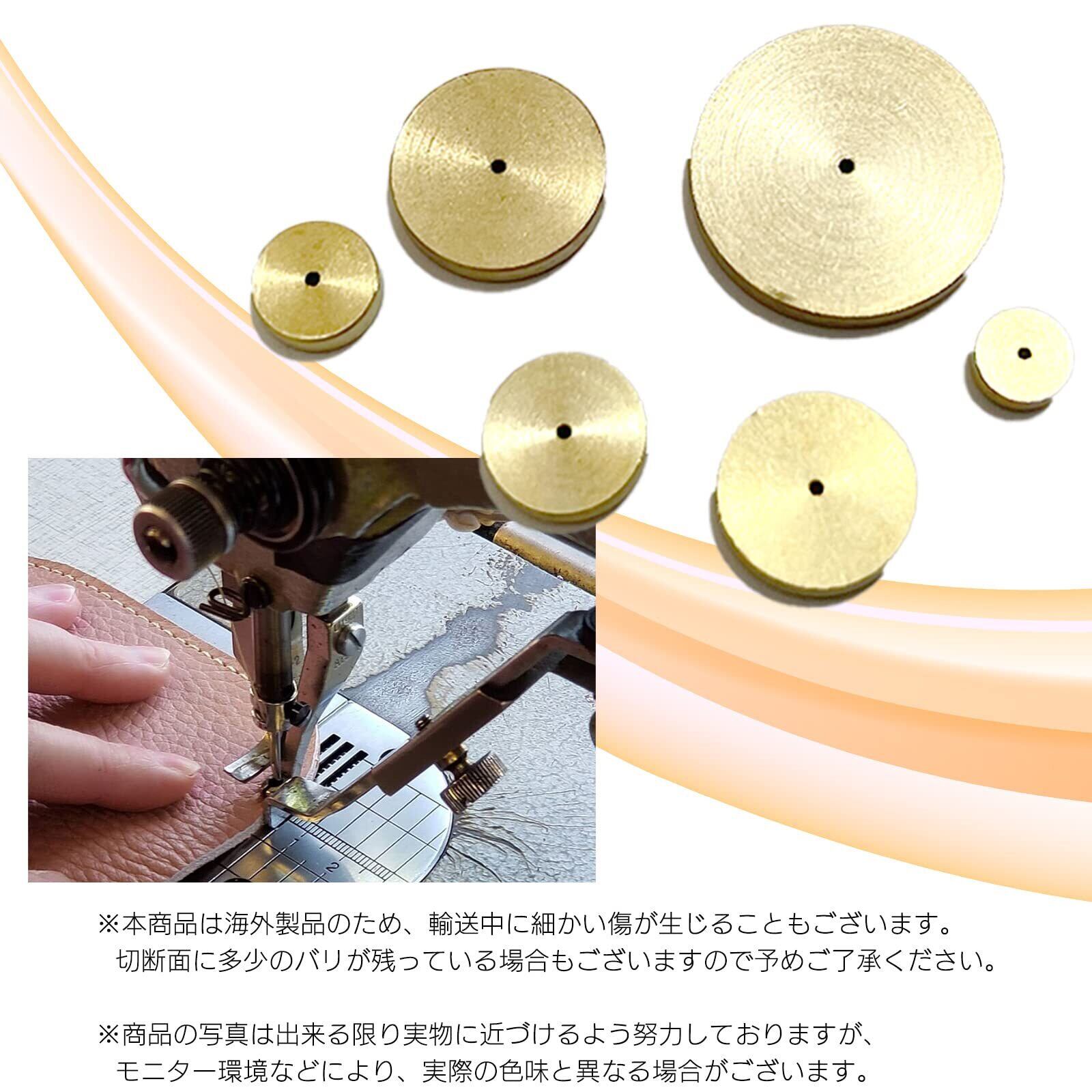 この真鍮製の丸型ヘリ定規セットは、レザークラフトや手芸の型紙作成時に役立つ便利なツールです。直径20mm、14mm、12mm、10mm、8mm、6mmの6種類のサイズが揃っており、幅広い用途で活用できます。型紙に合わせて正確な位置に線を引いたり、均一なマージンを確保する際に便利です。