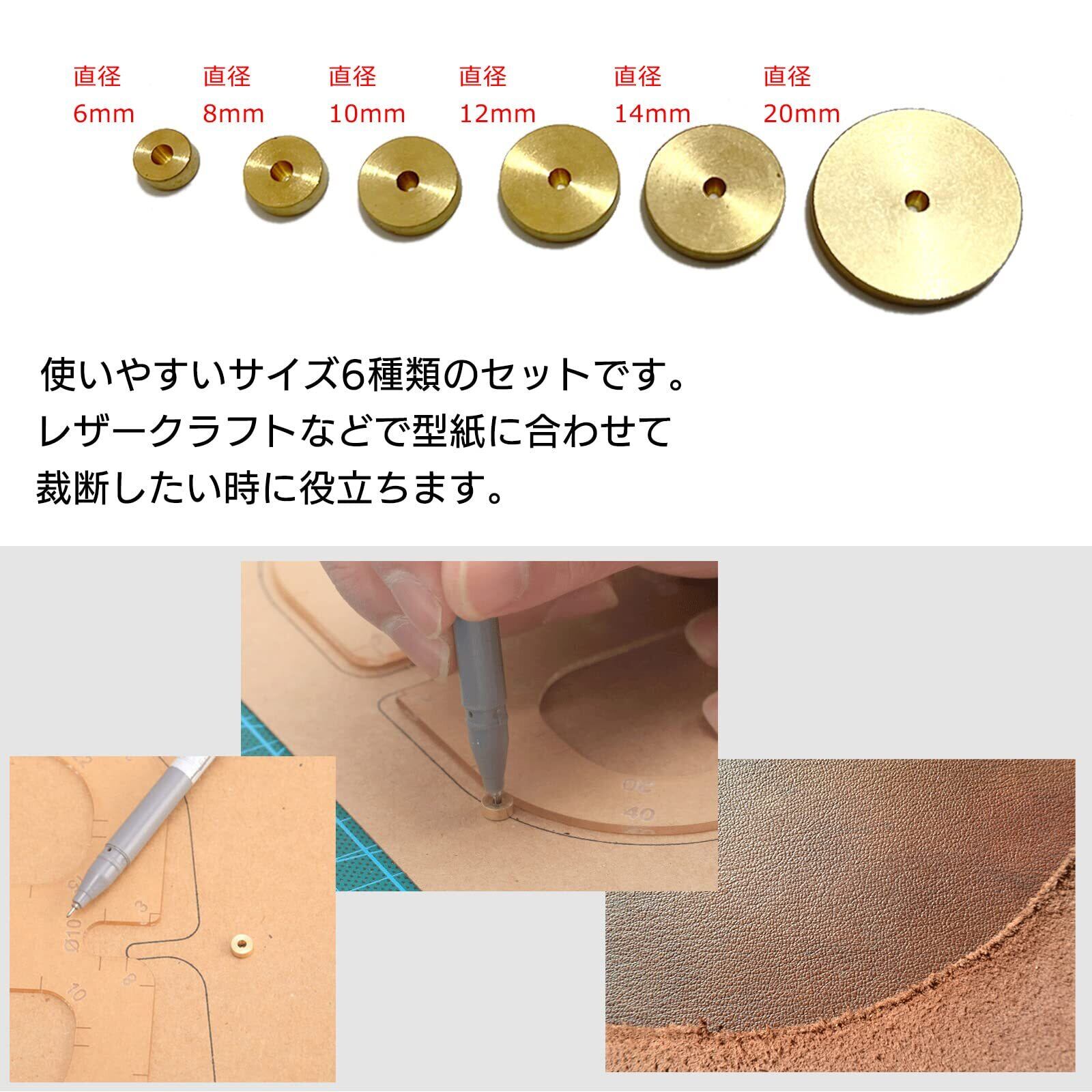 S-NET レザークラフト 丸 定規 型取り ガイドゲージ 真鍮 工具 丸ヘリヘリ落とし 6個 セット 6mm ~ 20mm SN-300-MJ 穴 1.7mm