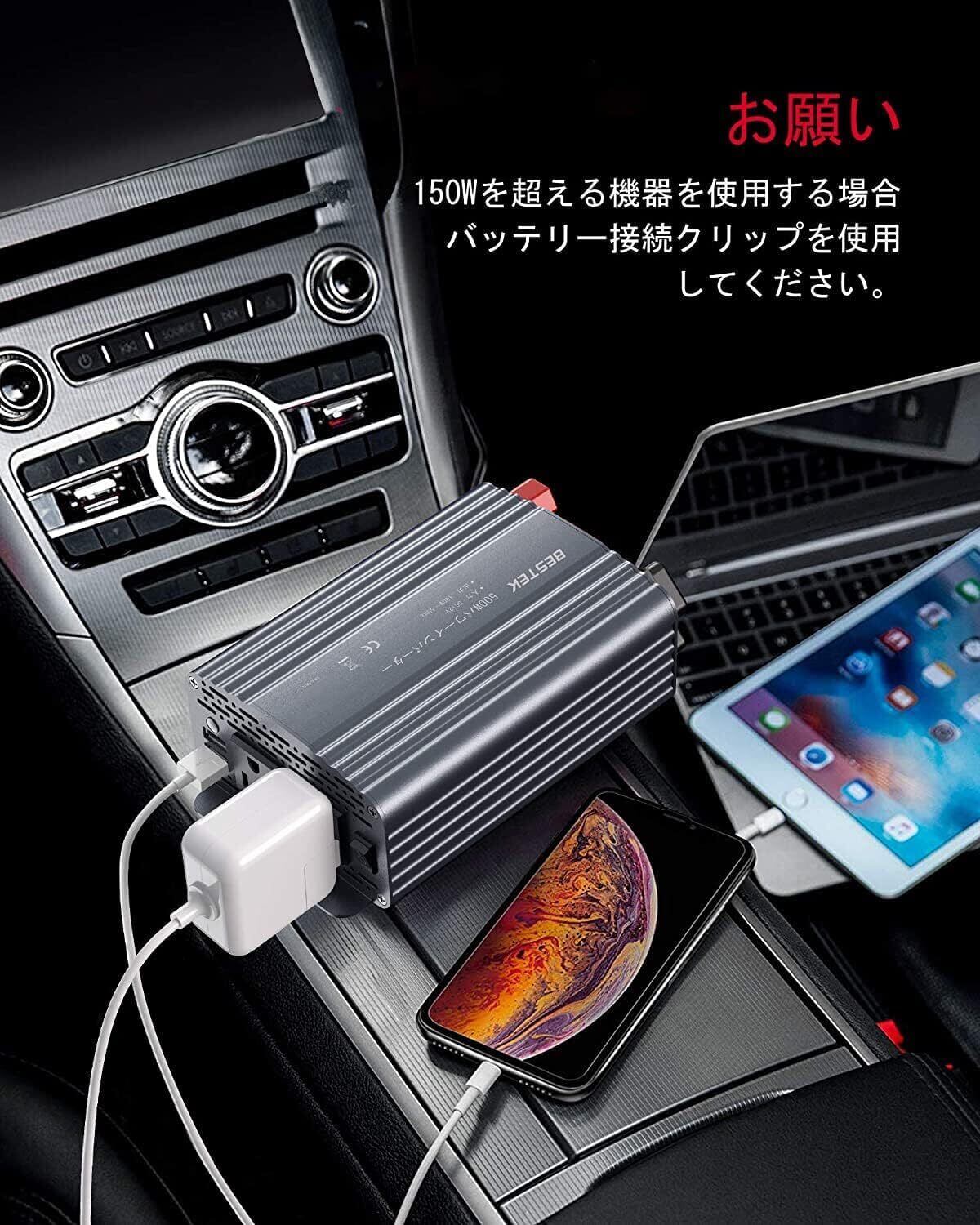 BESTEK インバーター シガーソケット コンセント 500W DC12VをAC100Vに変換 USB2ポート搭載 12V車専用 カーインバーター 車載用インバーター グレー MRI5010BU-GY-N1