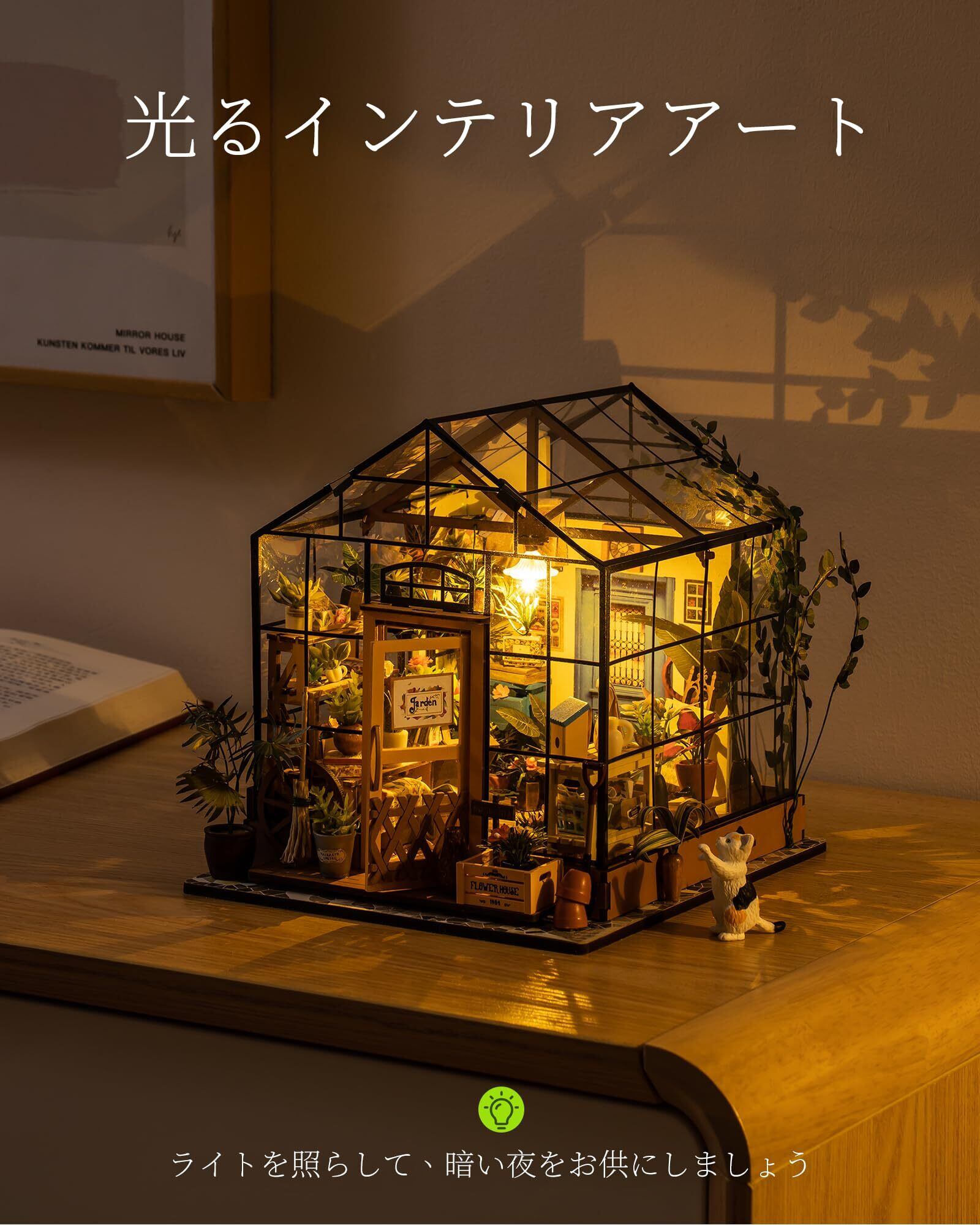 【2022最新】ROBOTIME ミニチュアハウス ドールハウス DIY ミニチュア キット 人形ハウス LEDライト付きミニモデルキット フィギュア アクセサリー DIYクラフト おもちゃ 子供 大人向け クリスマス 家族や友人への誕生日プレゼント ホームデコレーション インテリア(温室)