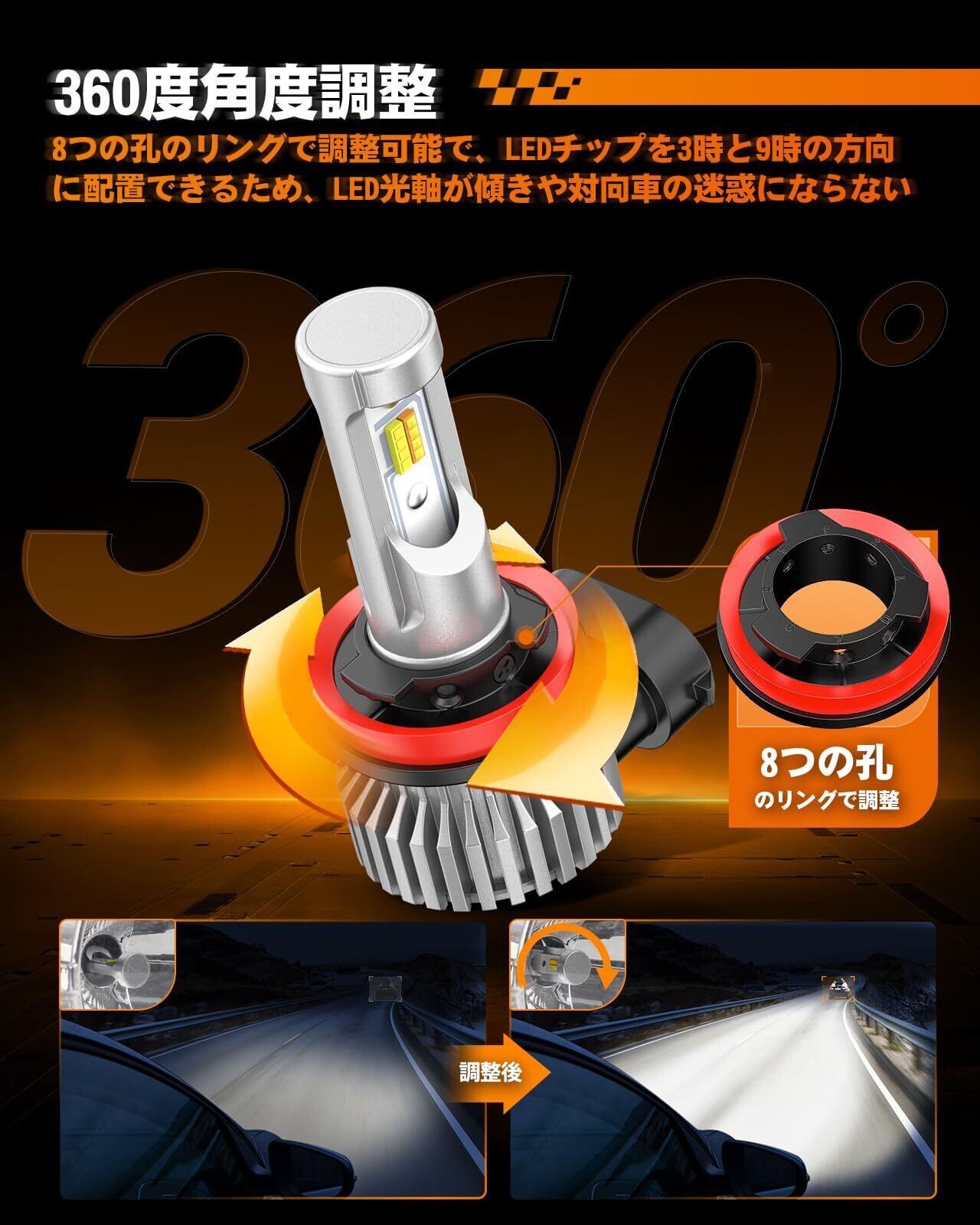 【15000LMの超強力な光量】このh11 led フォグランプ h8 led フォグはなんと驚異的な明るさを持ち、最大15000ルーメンもの光を放ちます! CSP1860チップの最新技術を採用し、均一で隙間のない光を提供します。50ワットのパワーで、点灯不良や消灯、暗いエリアなどの問題も解決しています。 このh11 led フォグランプ h8 led フォグの明るさは800%向上しており、積算球測定の反射光は自動車検査基準に合致する:15000ルーメンの反射、500カンデラの透過となっています。 これらの特徴により、豊かな光量と満足度の高い照明効果を実現し、 前方の道路や障害物をクリアに見ることができ、他のドライバーに対して自分の存在を際立たせることができ、夜間運転や悪天候下でも安全性を大幅に向上させることができます。