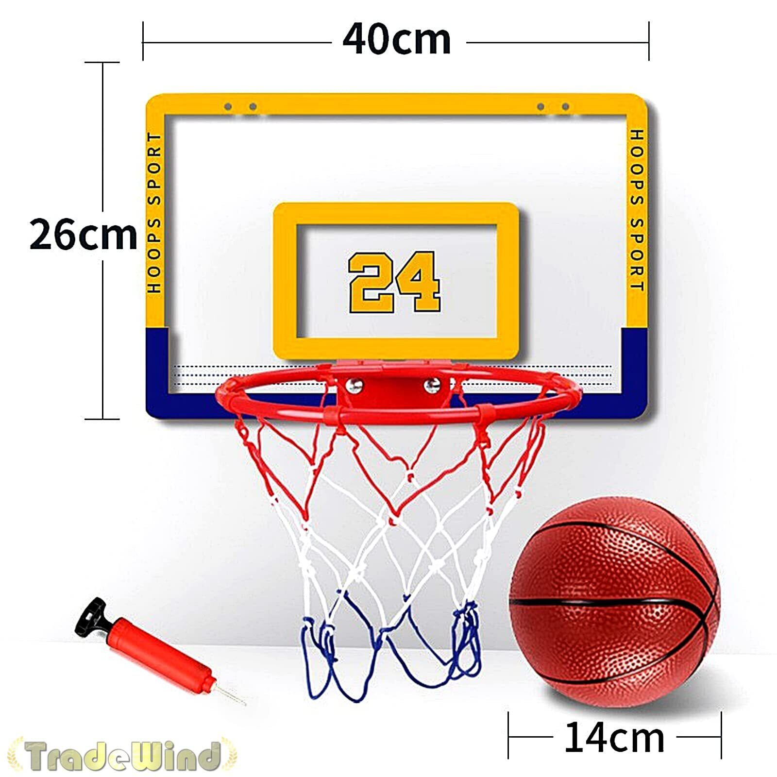 TradeWind バスケットゴール バスケットリング ネット バスケ ボード 壁掛け シュート練習 ボール エアポンプセット ミニサイズ(黄x青40cm)