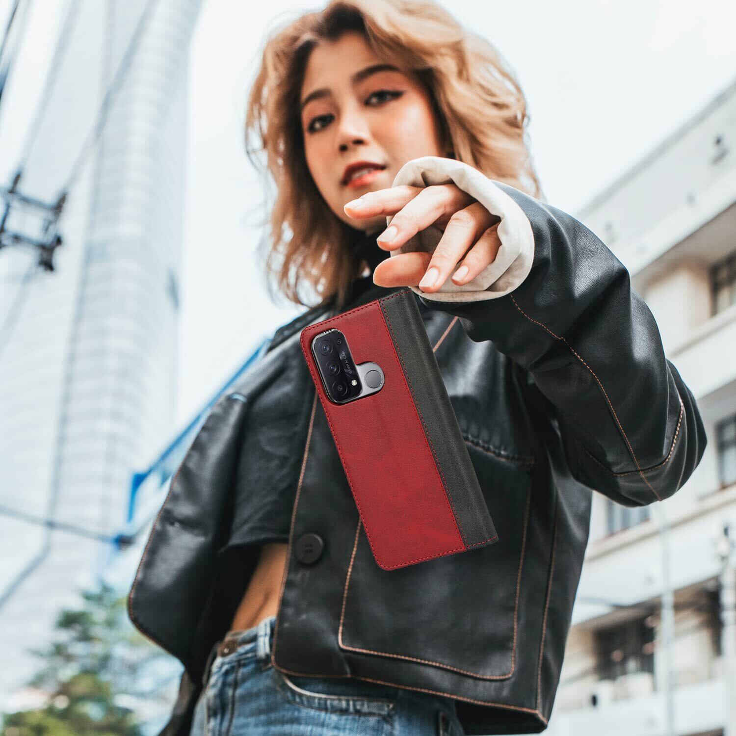 Havaya OPPO Reno5 A ケース オッポ リノ 5 a ケース A1010P A103OP スマホケース CPH2199 手帳型 au 耐衝撃 docomo カバー 楽天モバイル マグネット式 SoftBank カード収納 スタンド機能 レザー-レッド+ブラック