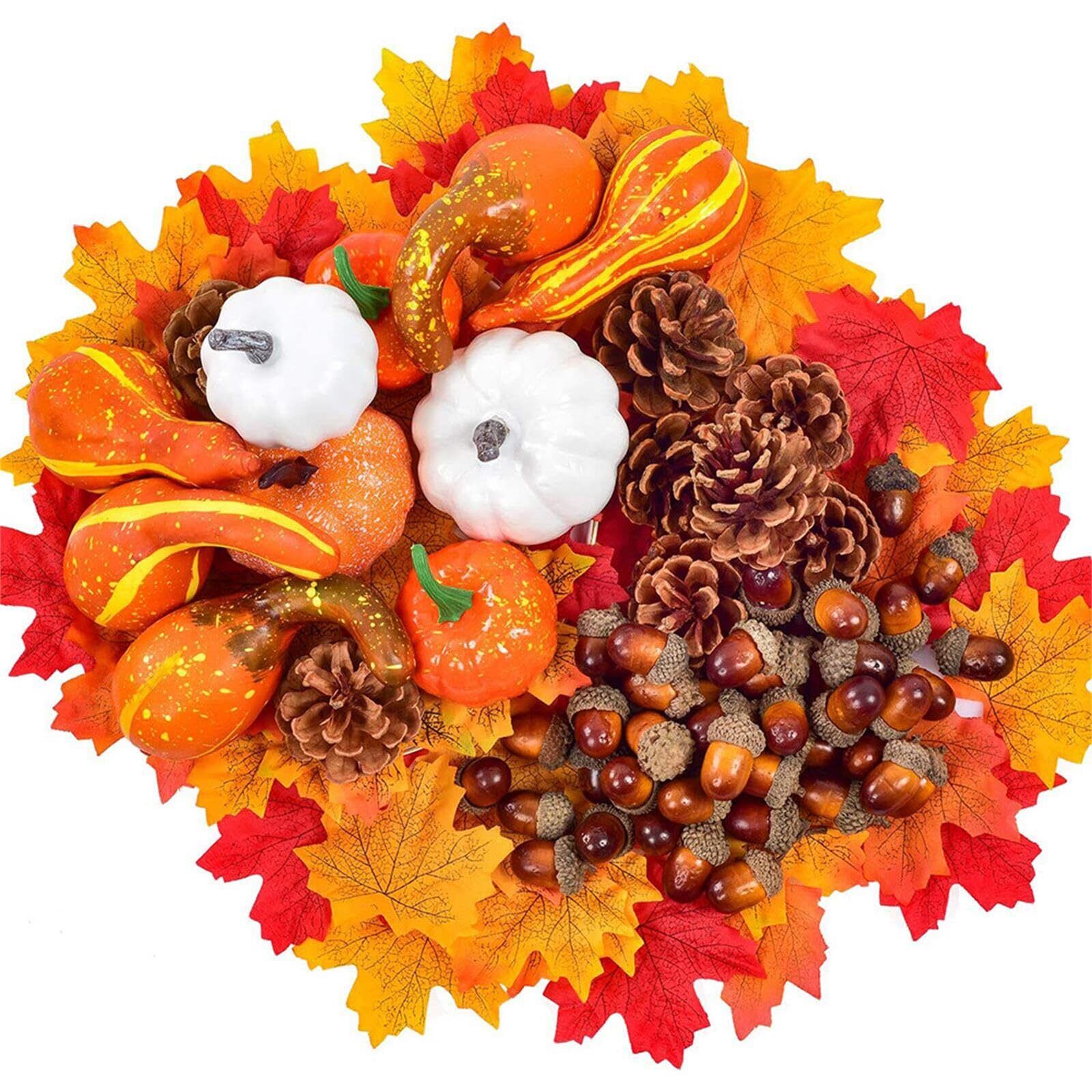 【お得な218個セット】カボチャ、紅葉、松ぼっくり、どんぐりなどの組み合わせは、秋の花輪を作るための理想的な材料であり、感謝祭の飾りやハロウィーンの装飾に最適です。