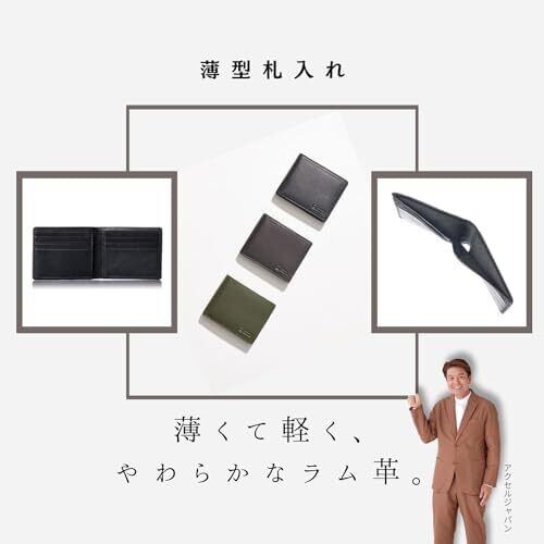 [VOICE] イタリア製 ラム革 超軽量 75g 厚さ1㎝メンズ 二つ折り 財布 カード8枚収納 小銭入なし プレゼント ギフト 箱入り (Black ブラック)