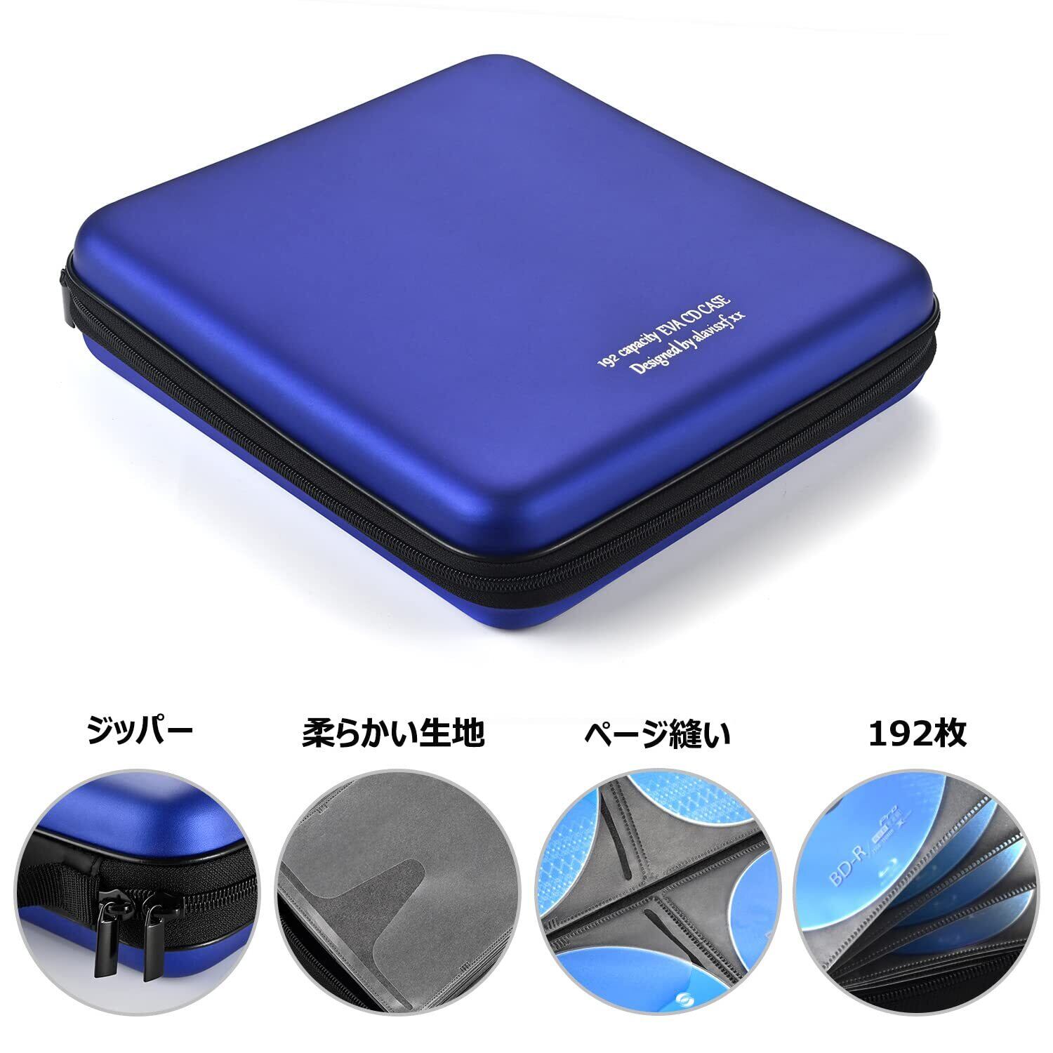 LIOVODE 192枚収納 CDケースポータブルEVA blu-ray ディスク収納ケース 大容量 DVD/VCD 収納 (192枚, ブルー192)