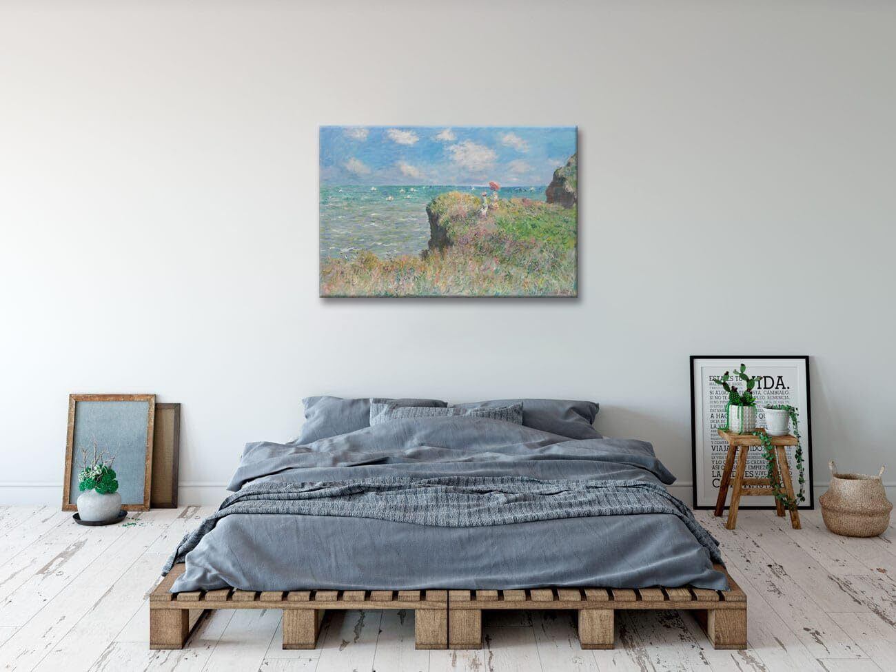 アートパネル モネ ポスター 壁掛け クロードモネ プールヴィルの断崖の上の散歩 絵画 インテリア 額付き 油絵 玄関に飾る絵 風水 開運 (40x60cm)