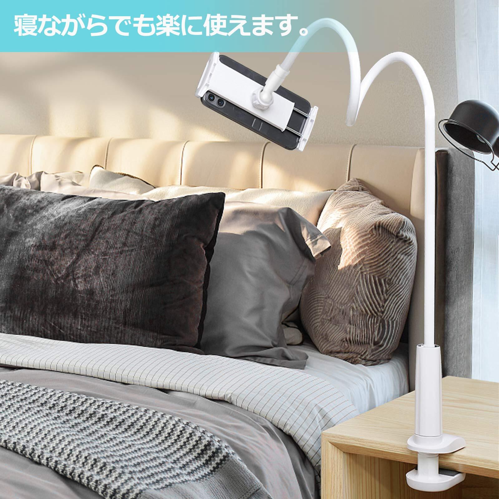 AKEIE スマホ & タブレット スタンド or ホルダー 4-10インチ対応 フレキシブルアーム付き 寝ながらスタンドfor iphone ipad mini ipad air2 REGZA Xperia Galaxy SONY Kindle Switch (ホワイト)