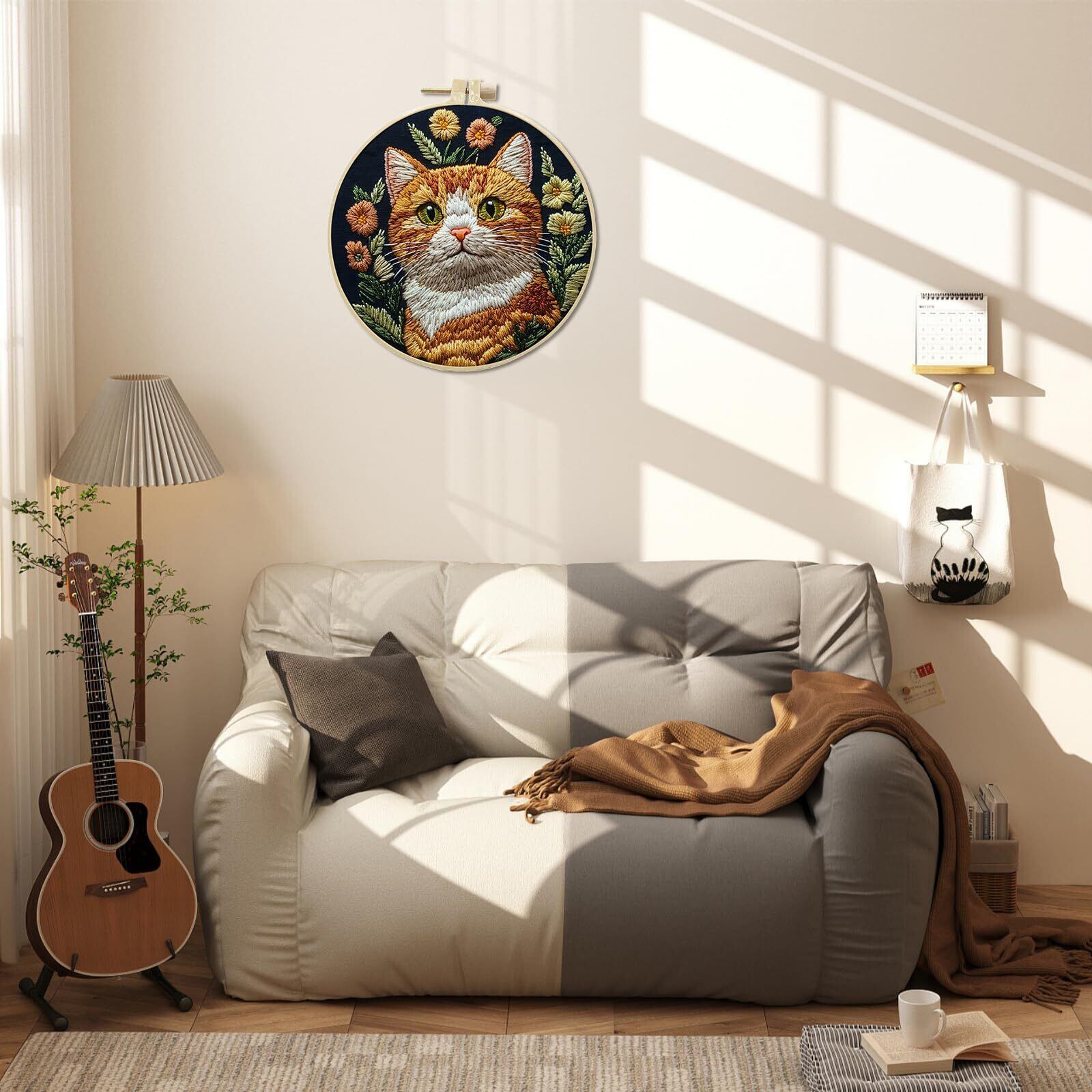 IUHUI 刺繍キット 初心者 大人用 - かわいい猫の国 Ⅰ パターン DIY ハンドステッチ 刺繍セット フープ付き (いたずらな猫の花)